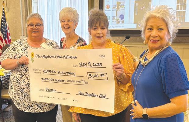 New Neighbors Club of Lubbock recently distributed funds to four local charities. This year’s recipients were Unpack Ministries, Lubbock Impact, New Legacy Home for Women, and Sleep in Heavenly Peace. A check for $3,600 was presented to each of the four organizations.
