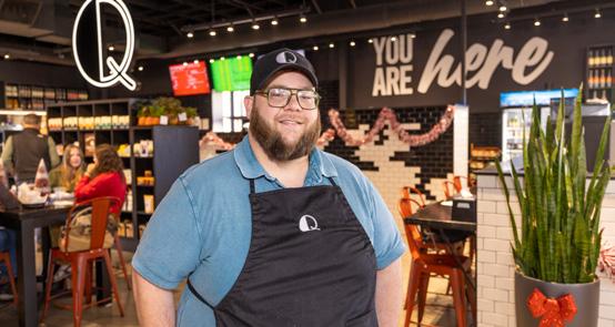 In addition to fresh, high-quality food and drinks, Q offers several ways for customers to enjoy their visit. The restaurant includes tables and high-tops, a 10- to 12-seat conference table for meetings, four soft armchairs, a large circular couch and a mini library. “We also have three TVs running on different channels,” Ike says. “One’s always on sports, one’s on a nature show and one is for kids. We also