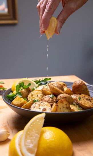 Place potatoes in basket of air fryer and cook at 400 F for 10 minutes. Shake basket and stir potatoes, and then cook until potatoes are golden and tender, 8 to 10 minutes more. Squeeze lemon juice over cooked potatoes and garnish with parsley before serving.