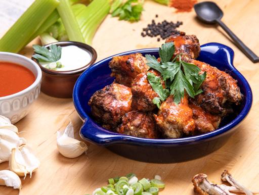 Carefully remove the wings from the air fryer, cover with Buffalo sauce and serve with your favorite sides.