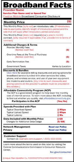 The FCC is working to limit confusion about broadband services by creating a “nutrition label” providers must display to consumers. While implementation might take time, the example label provided by the FCC offers a guide to information shoppers might consider now when choosing a service.