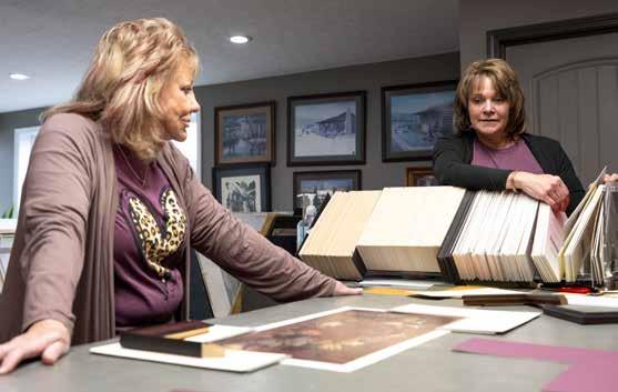 “One time a man came in with his grandfather’s Army jacket and cap from the Korean War,” Kim says. “Lisa designed this great shadow box for it. We also make shadow boxes for gradu ates’ diplomas and tassels, and ones for babies’ clothes.”