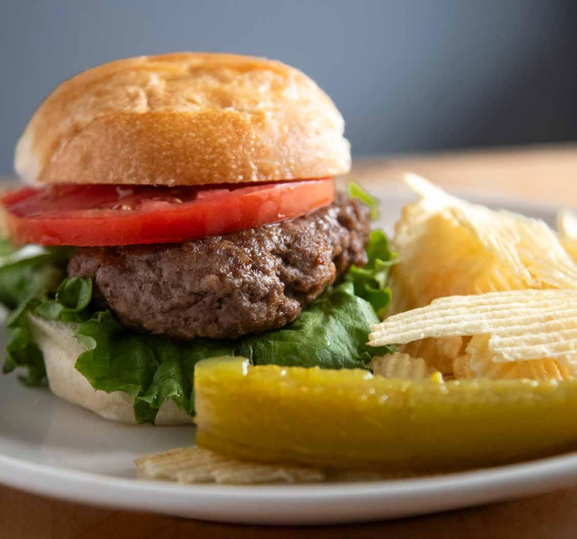 There’s more to making the perfect burger than hand-patting the beef, though that’s an excellent start. But before you do that, add a little salt and pepper, a dash of Worcestershire sauce, an envelope of onion soup mix and mayonnaise. Yes, mayo. Ignite the fire, add your burgers to the grill and get ready for a taste explosion. And since it’s summer, add a watermelon salad and finish the meal with a big scoop of easy-tomake peach ice cream—no churning required—and you have a meal fit for a summertime feast.