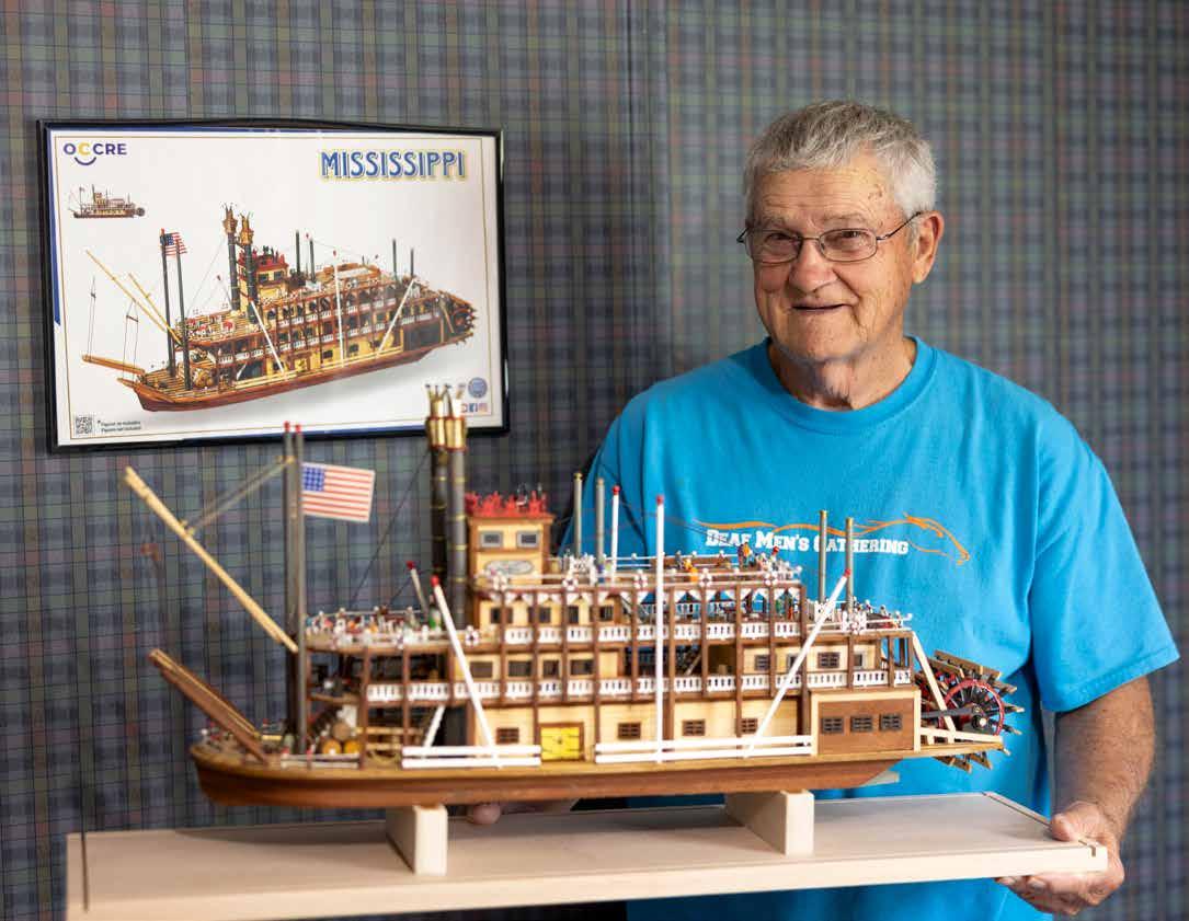 Now retired, Tony Gilbert, former star football player at Kentucky School for the Deaf, enjoys building model ships like this Mississippi riverboat.