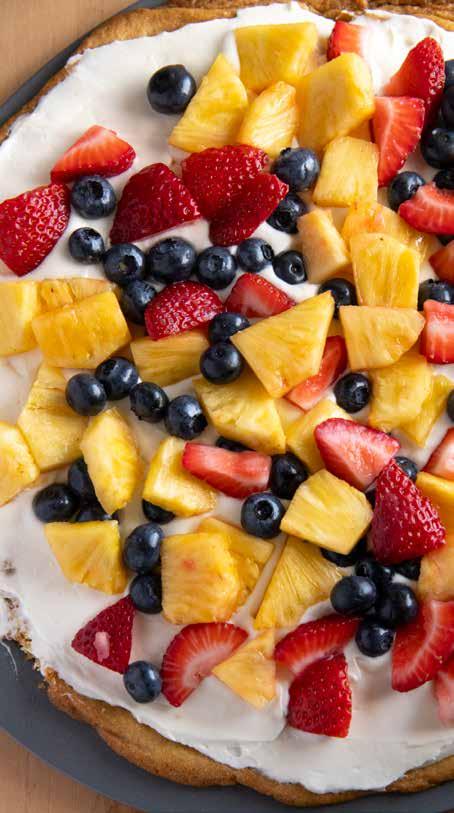 A dessert pizza with fresh berries and other fruits available year-round delivers a refreshing finish. Make the crust the day before and layer on the cream cheese spread. But wait until shortly before serving to add the fruits so they will stay colorful and fresh.