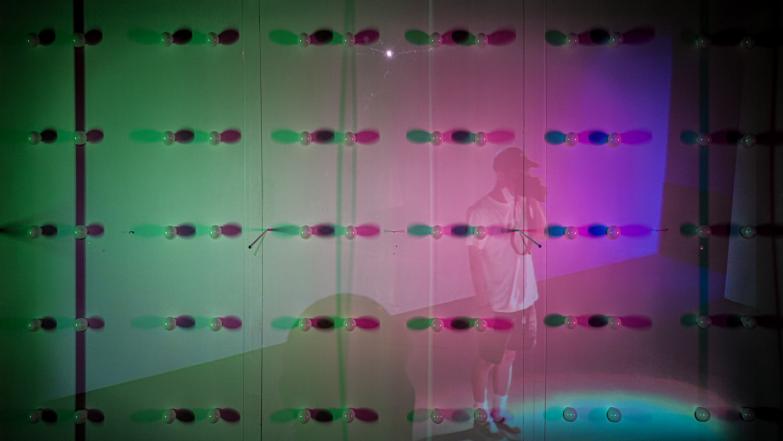 作品媒材:燈泡、光敏電阻、鋁、壓克力、木作、電腦燈、投影機、攝影機、電腦