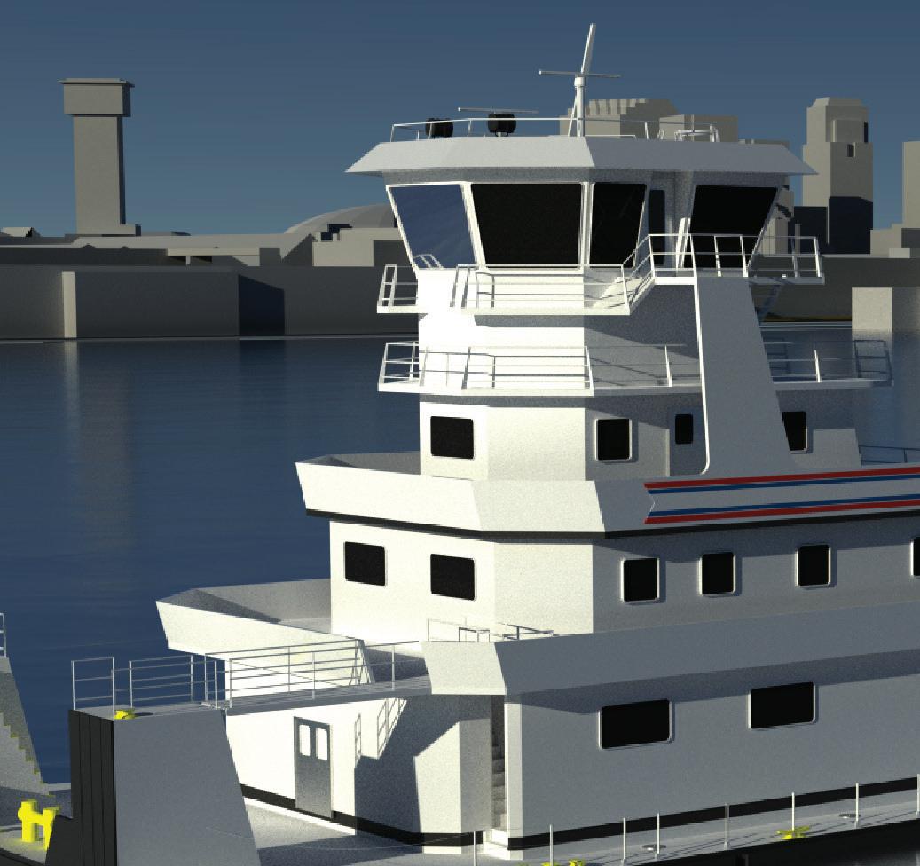 • G&W Industries, Cleveland, recently delivered the 90'×38'×8', ferry