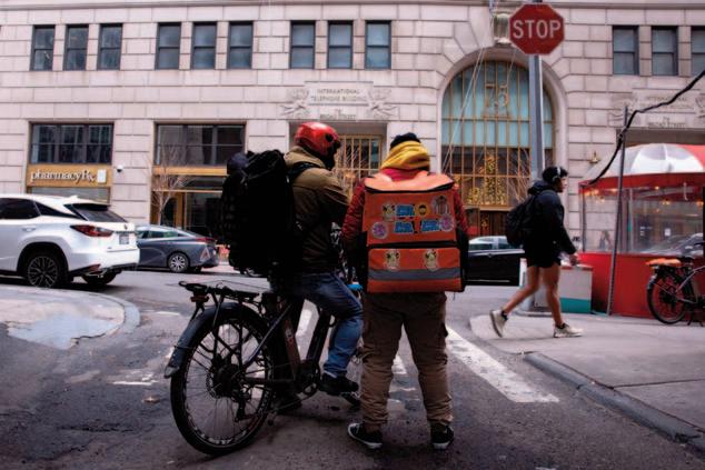 Delivery workers make the rounds in lower Manhattan, Dec. 5, 2023.