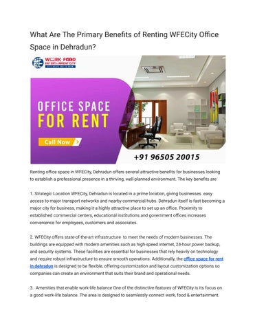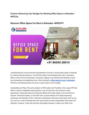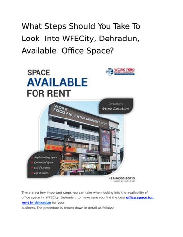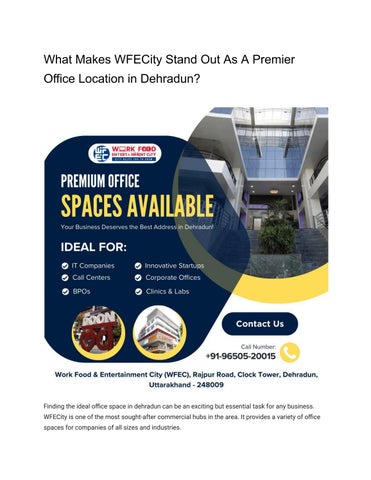 Finding the ideal office space in dehradun can be an exciting but essential task for any business. WFECity is one of the most sought-after commercial hubs in the area. It provides a variety of office spaces for companies of all sizes and industries.