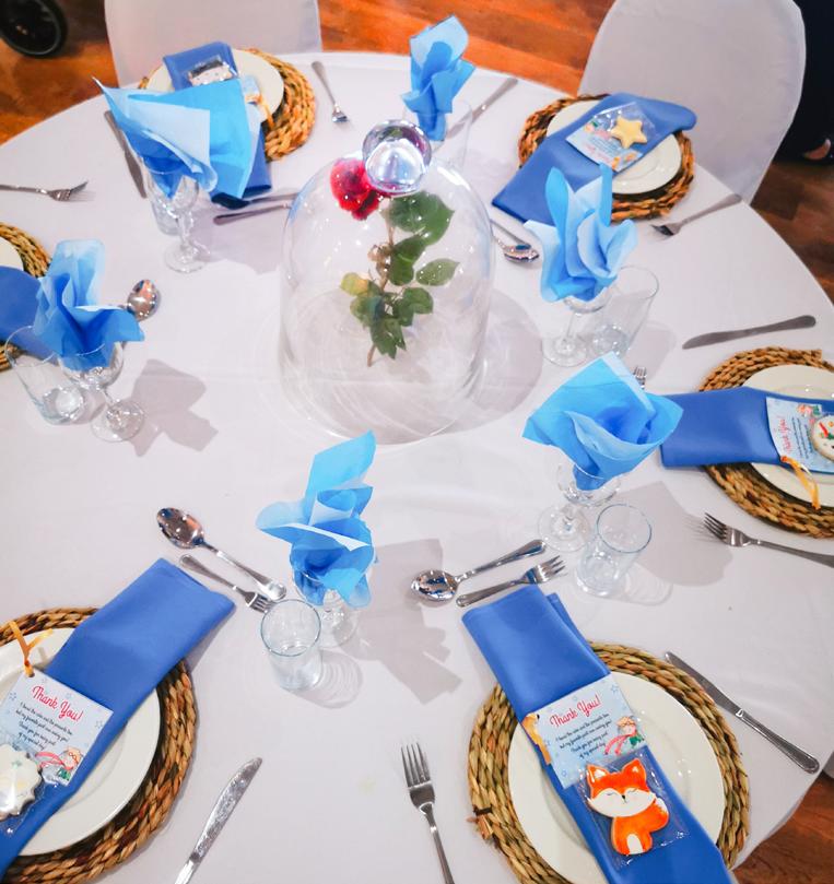 The centerpiece was a single long-stemmed red rose under a glass bell jar. Like in the book, the red rose is one of the main charac ters and The Little Prince’s best friend.