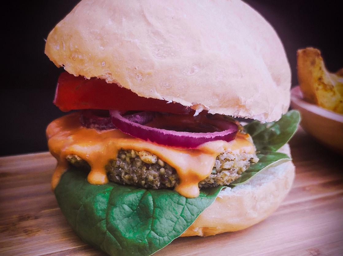 Form into 4 burger patties, roughly the same size. Place in a lightly greased oven dish and bake for 10 minutes.