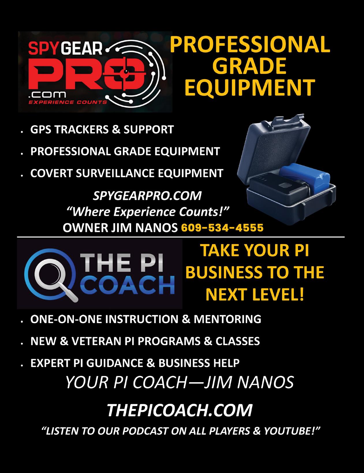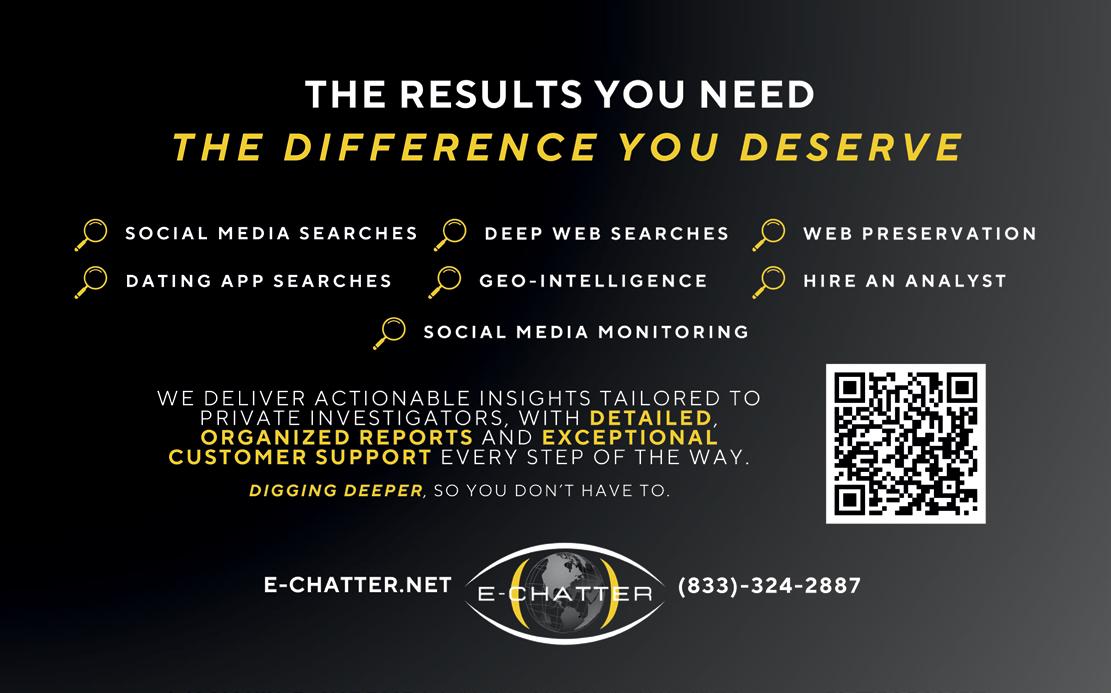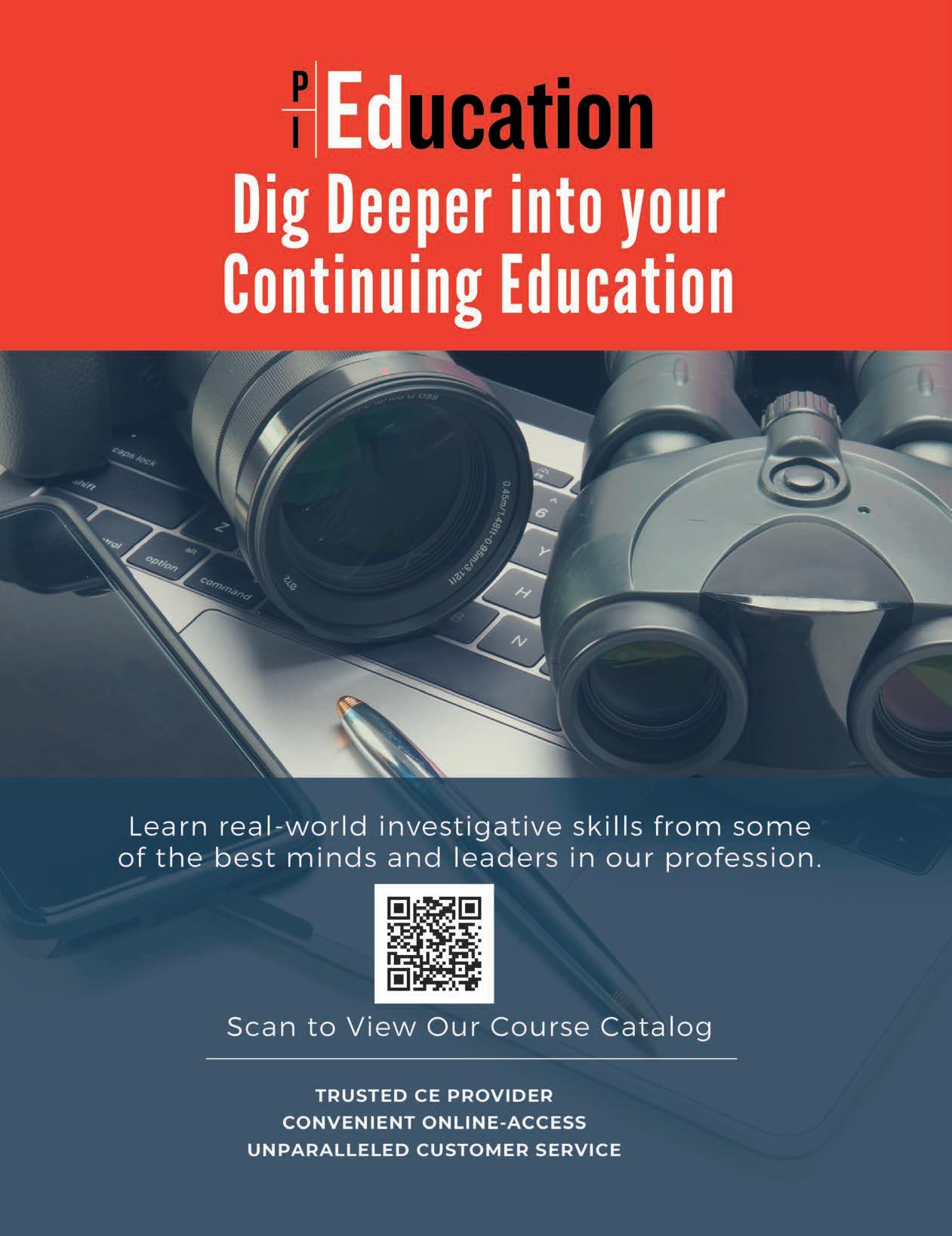 Another feature in this issue examines the importance of specialization in the modern PI business. In “Specialization vs. the ‘Jack of All Trades,’” veteran investigator and trainer James Nanos makes a strong case for narrowing your focus rather than trying to “do it all.” Nanos explains that investigators who attempt to offer every possible service—from surveillance to accident reconstruction— often spread themselves too thin and dilute their expertise. By contrast, those who choose one or two disciplines to master not only develop deeper skills but also build stronger reputations, command higher rates, and create more sustainable businesses. To learn why focus is one of the smartest strategies for long-term success, turn to page 16.