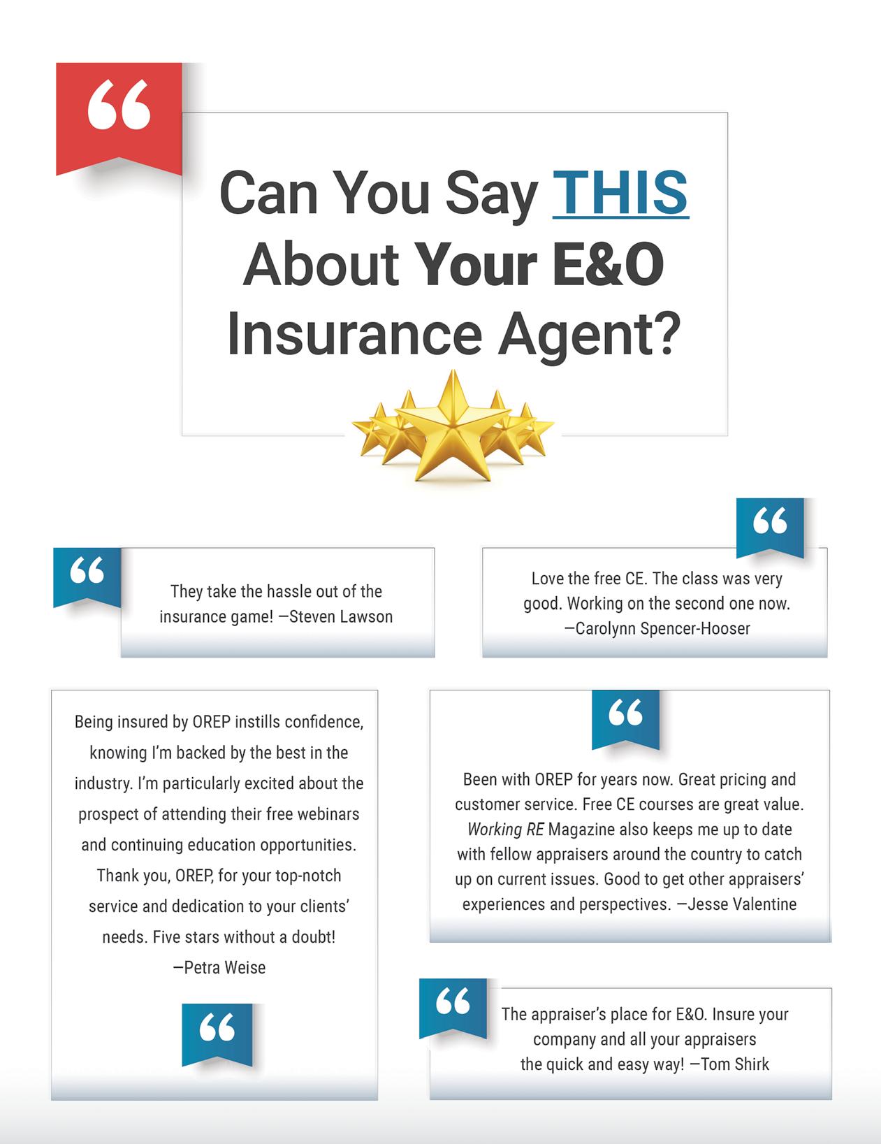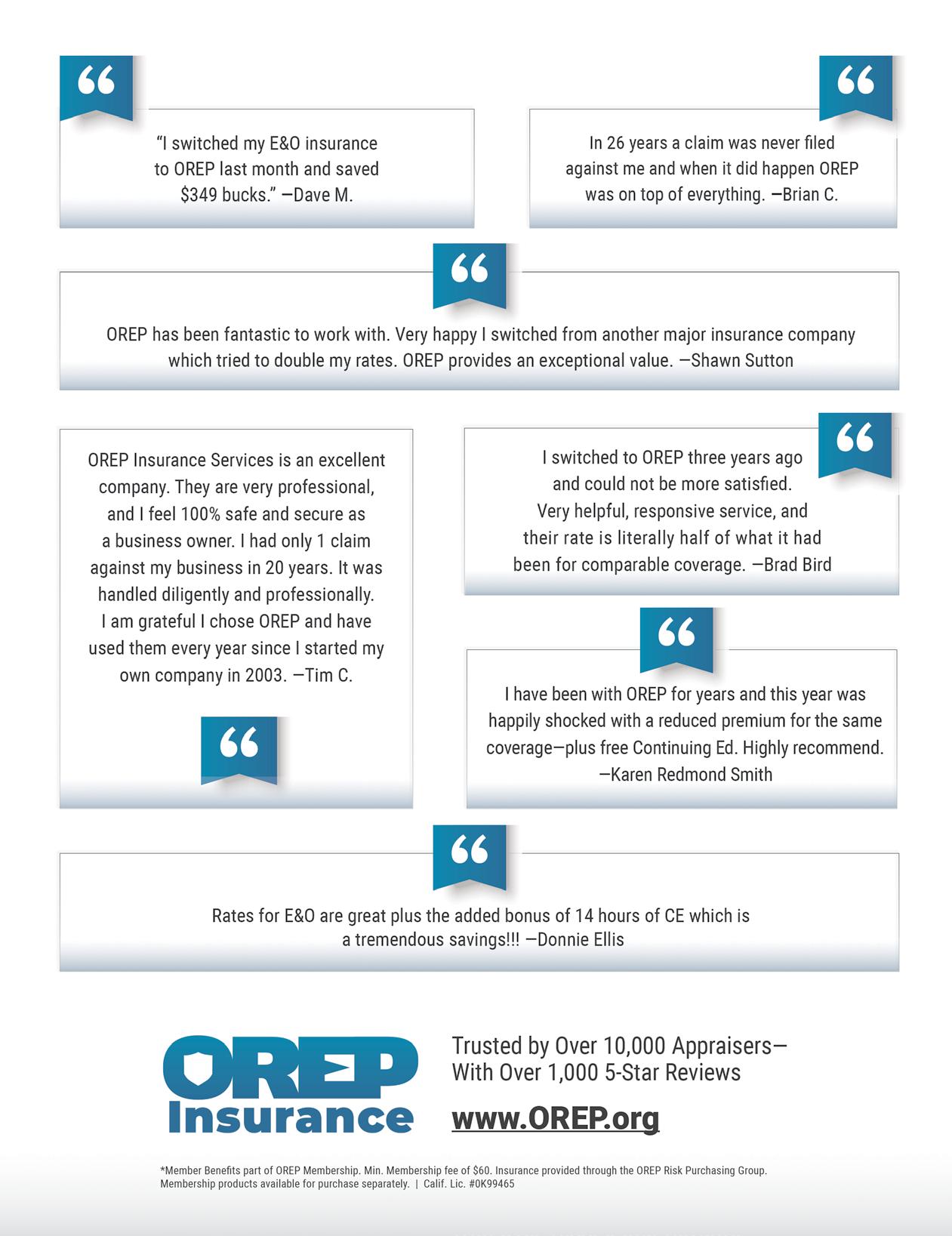 Isaac Peck is the Publisher of Working RE magazine and the President of OREP, a leading provider of E&O insurance for real estate professionals. OREP serves over 10,000 appraisers with comprehensive E&O coverage, competitive rates, and 14 hours of free CE for OREP Members (CE not approved in IL, MN, GA). Visit www.OREP.org to learn more. Reach Isaac at isaac@orep.org or (888) 347-5273. CA License #4116465.