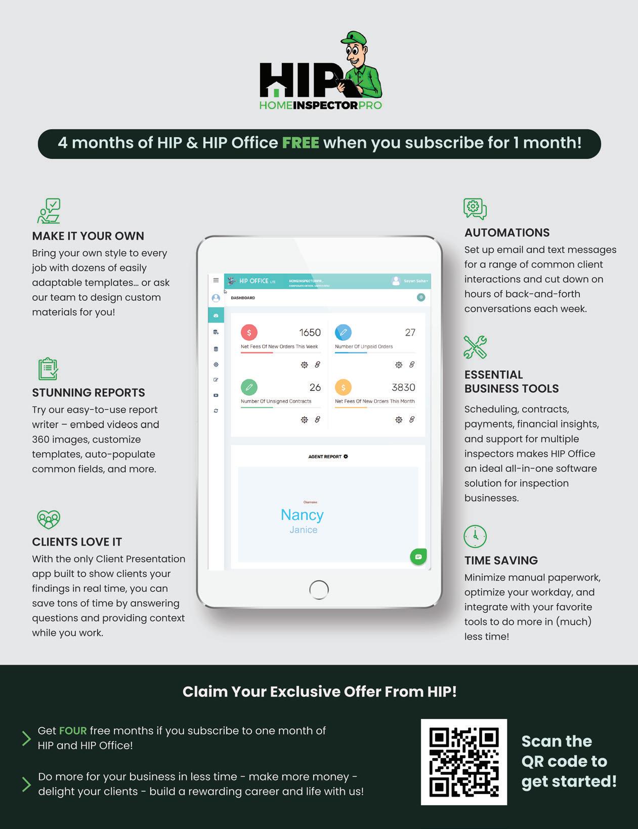 Within that context, we strive to understand and alleviate your business pain points on myriad fronts. In this Summer 2024 issue, for example, Editor Kendra Budd underscores Why Customer Reviews Matter (pg. 12) and also sits down with a veteran home inspector to wrestle with the existential question of whether it’s best to join a home inspection company or go it alone (See Is It Time to Be Your Own Boss?, pg. 24).