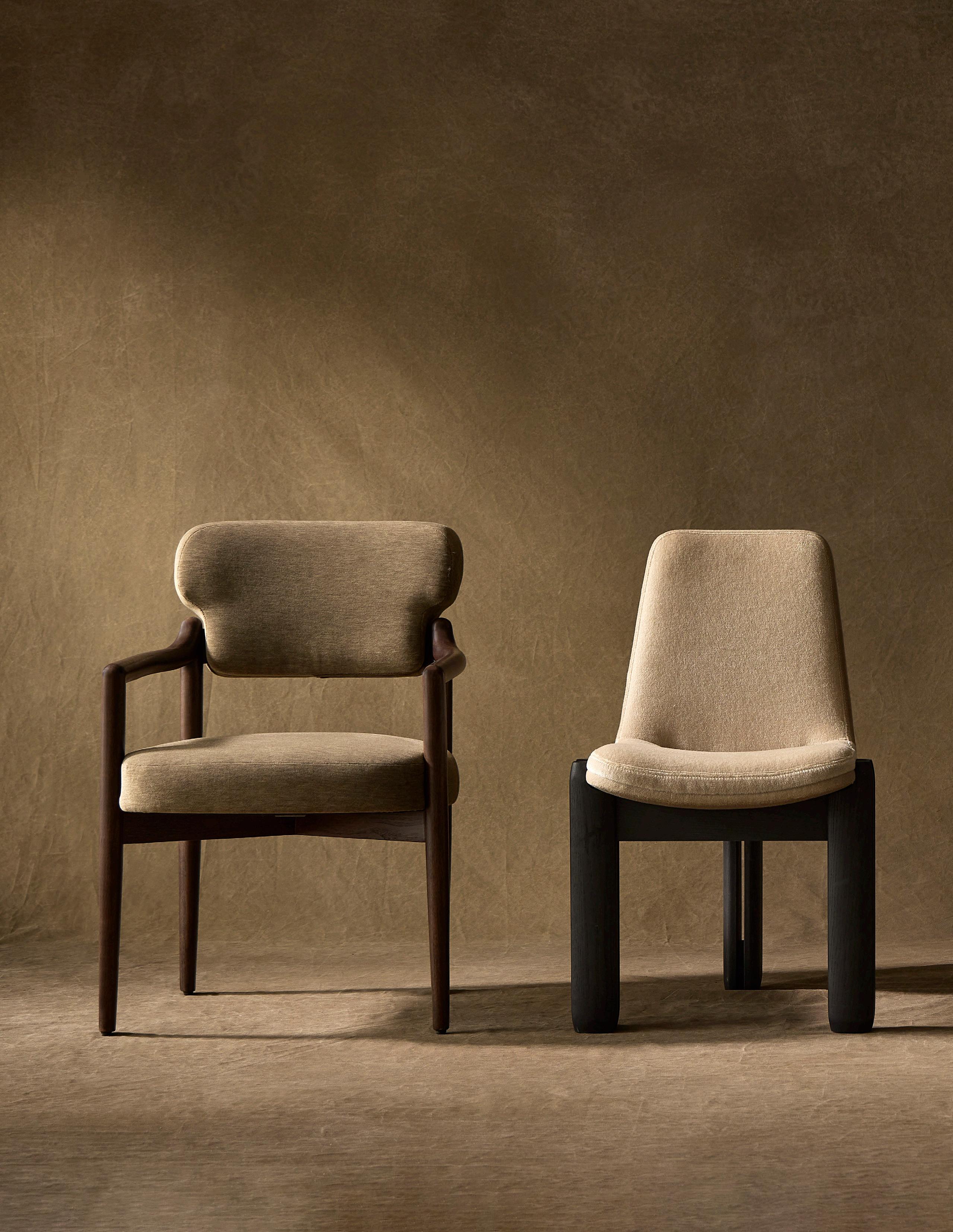 Exceptionally detailed and thoughtfully balanced, the Lina dining chair’s inviting proportions encourage exploration. Versatile, elegant, and designed for comfort, Lina’s finely turned and tapered legs delicately contrast its substantial upholstered seat and back. Defying aesthetic categorization, its curved arms offer ergonomic comfort while highlighting its intentional composition and exposed connections. Lina is offered in oak and walnut in a range of fine finishes, with COM upholstery.