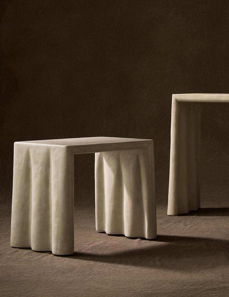 Isla’s solid surface and soft aesthetic are a compelling combination. Its cast material, echoing the draping of diaphanous fabric, creates the appearance of weightless movement. Balanced by a simple rectangular tabletop, the Isla Side Table is a striking addition to any space.