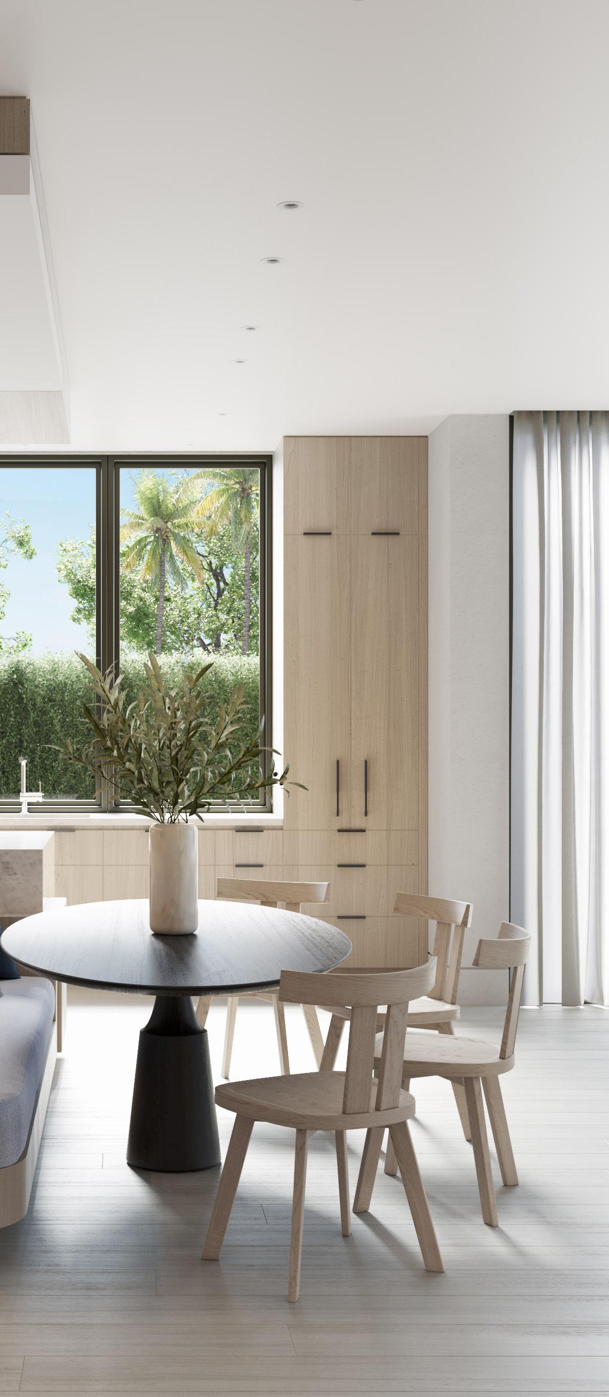 From casual family gatherings to sophisticated cocktail parties, minimal open-plan interiors and indoor-outdoor connections set the scene for memorable events of every kind. The gourmet kitchen features areas for prep, serving and casual dining, while a unified palette of light wood, textured stucco and light stone flows seamlessly from one space to the next.