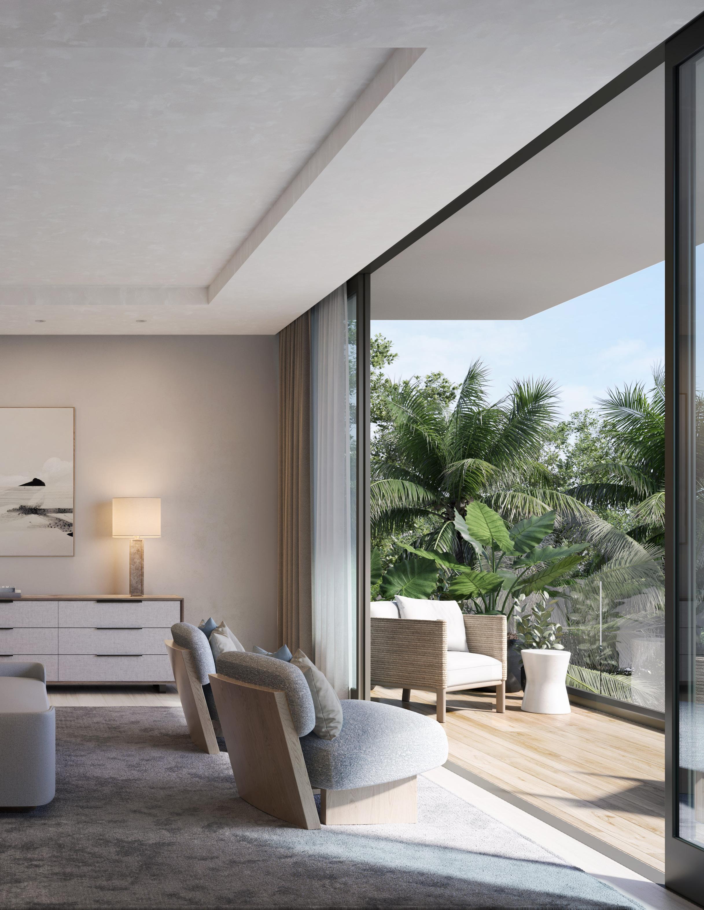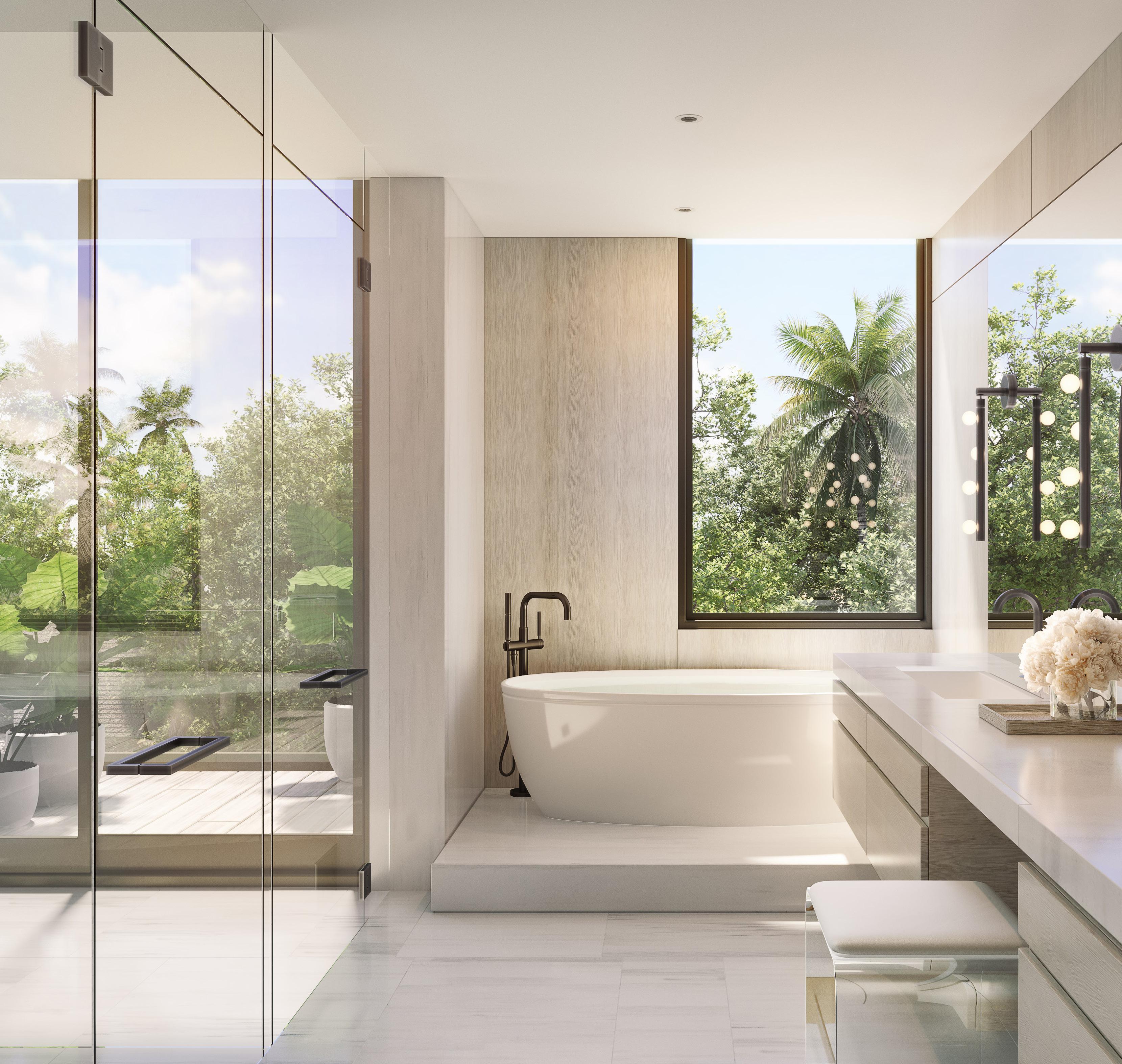 A calming oasis awaits. The serene, minimalist second-floor primary suite opens to an expansive, well-shaded terrace, and is complemented by a pair of marble-clad primary bathrooms and 8’x17’ and 11’x12’ walk-in closets.