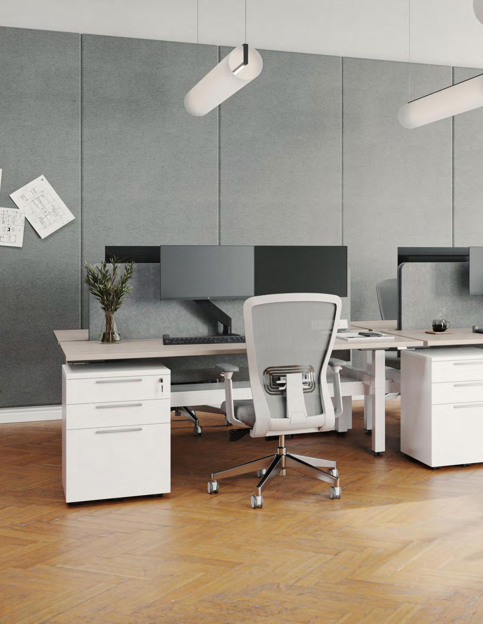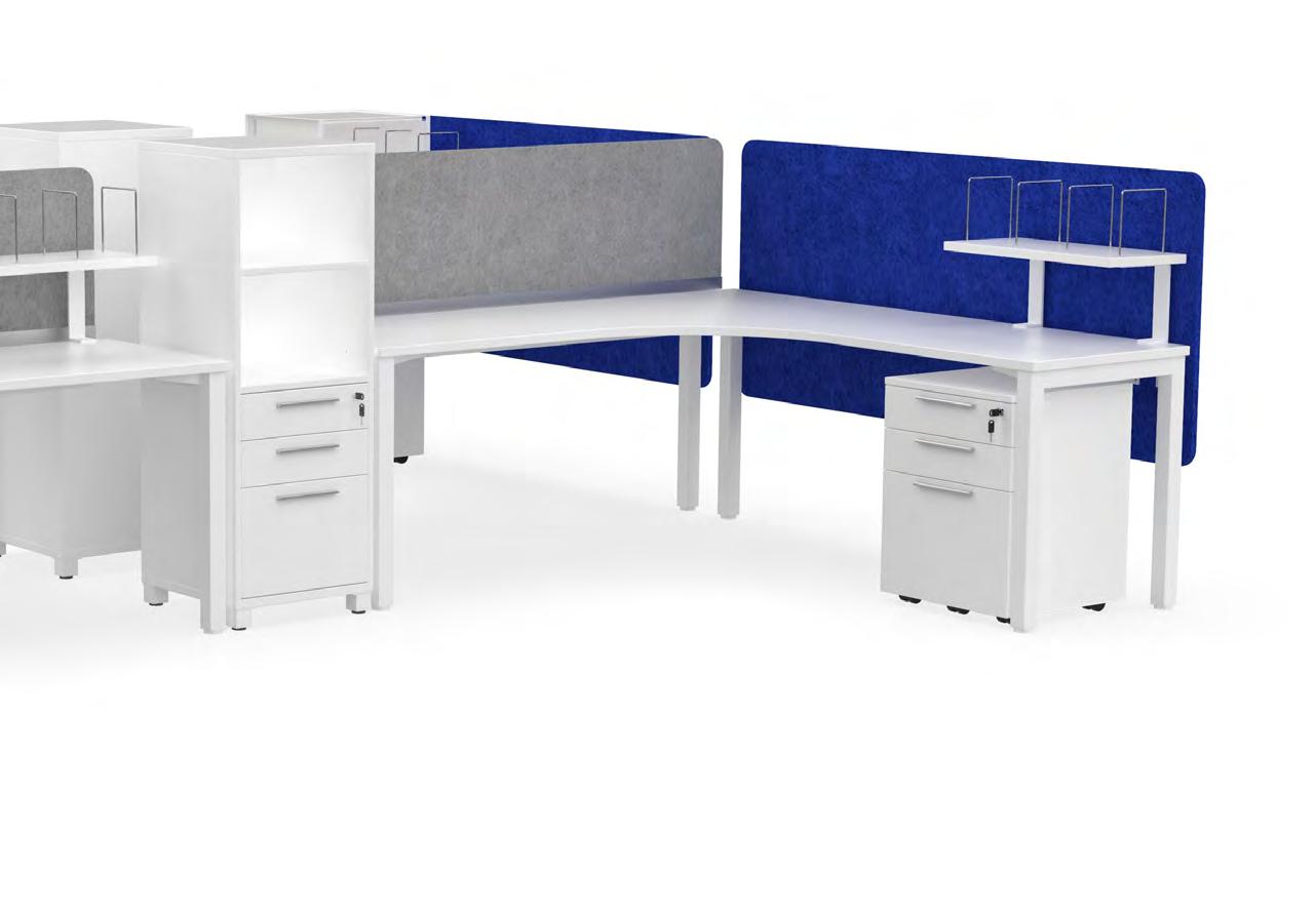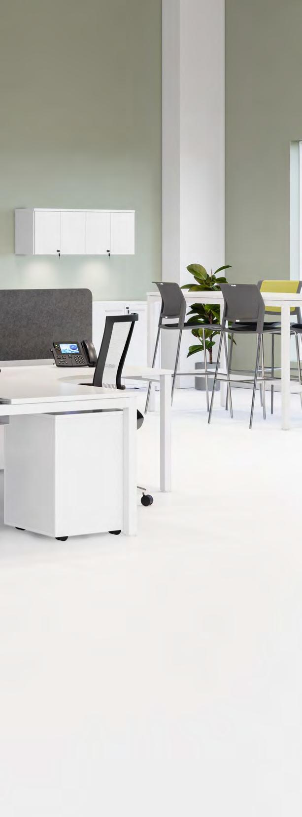 Worksurfaces are Studio White melamine on E1 grade substrate with matching SPVC edges