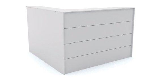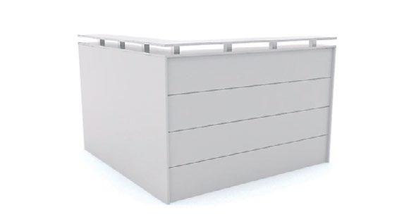 90˚ Corner: 42”h x 72.5”w x 72.5”w x 12”d