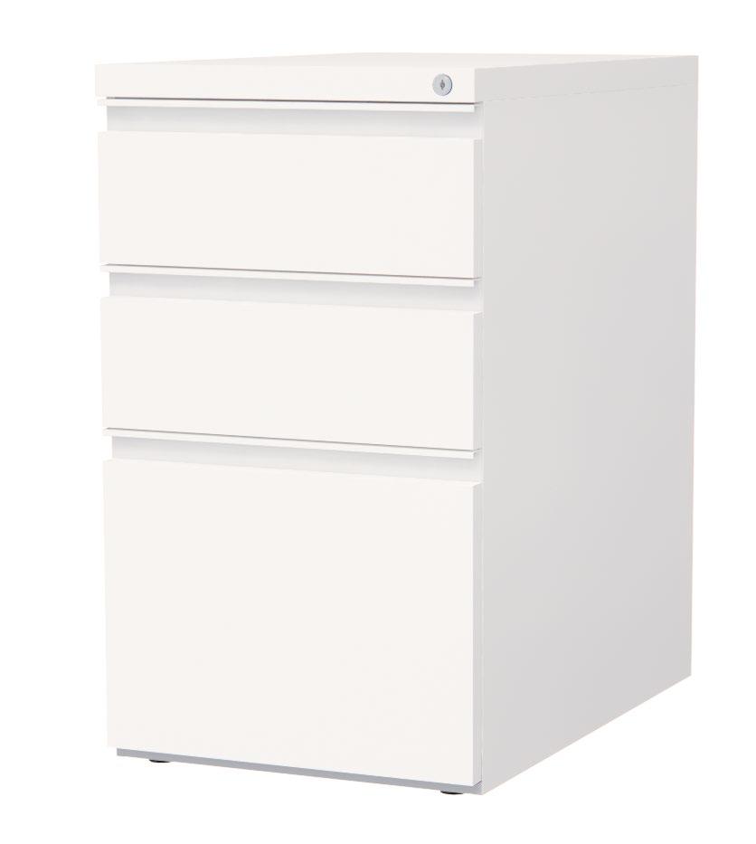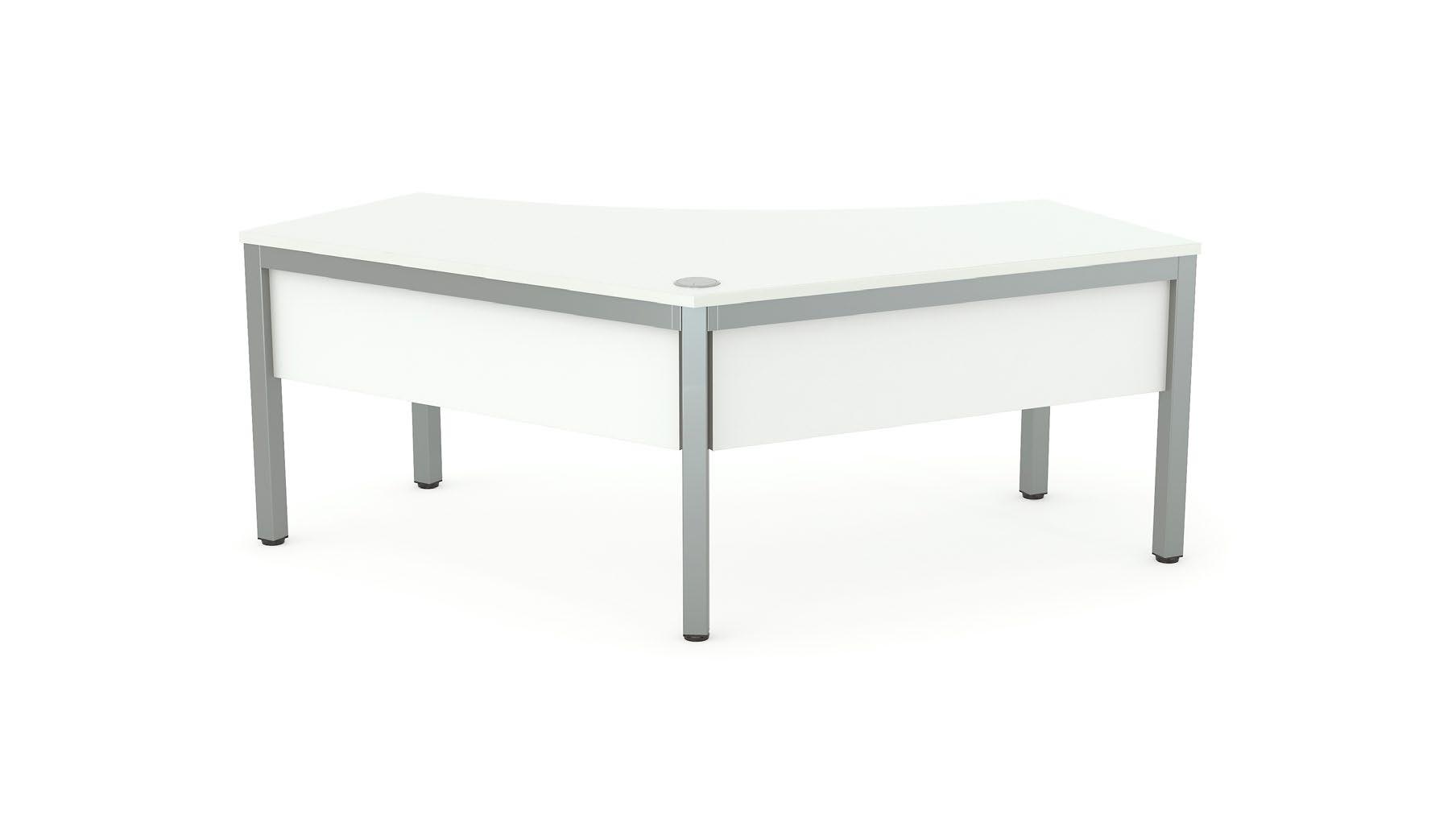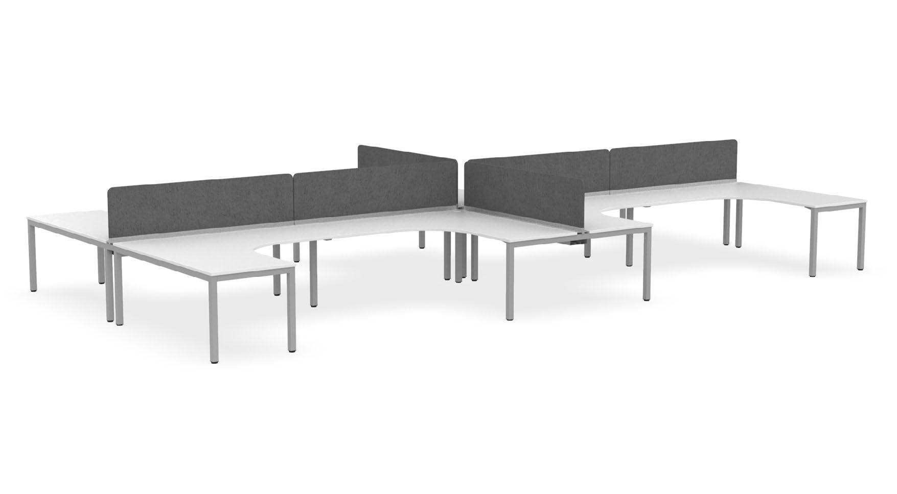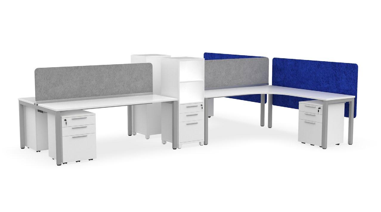 Worksurfaces are Studio White E1 grade substrate with matching SPVC edge