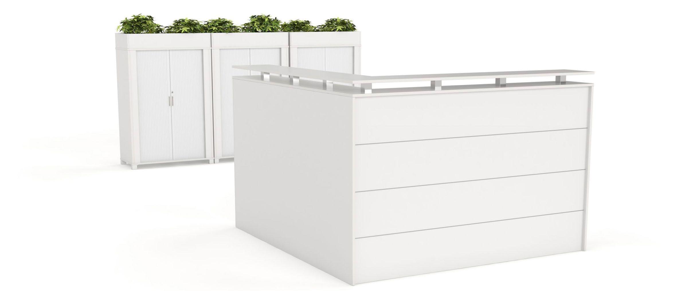 • Worksurfaces are Studio White melamine on E1 grade substrate with matching SPVC edges