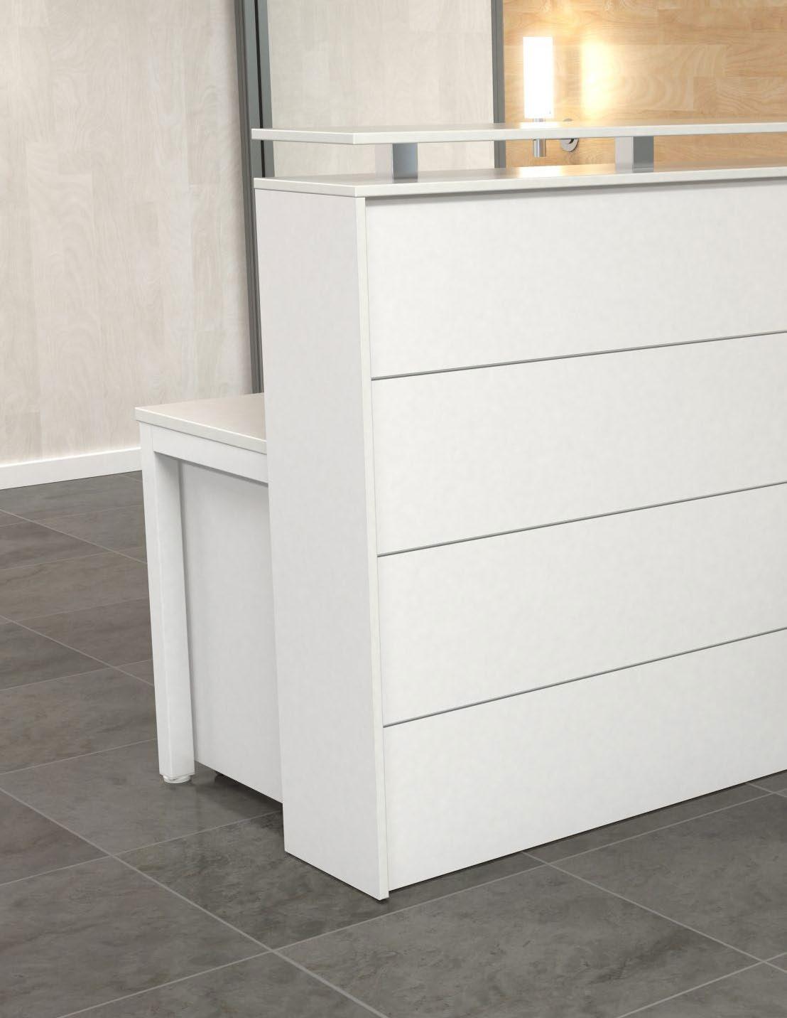 • Worksurfaces are Studio White on E1 grade substrate with matching SPVC edge