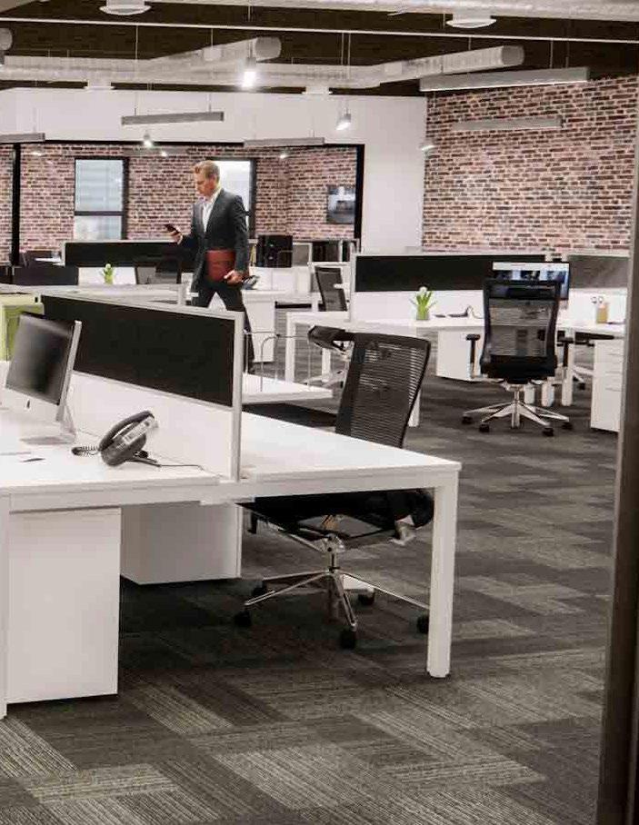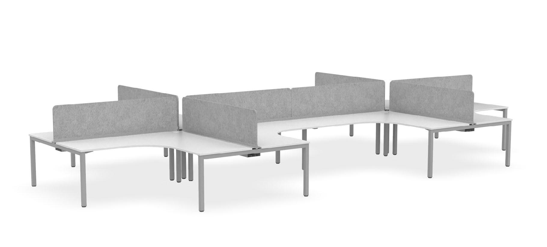 Worksurfaces are Studio White melamine on E1 grade substrate with matching SPVC edges