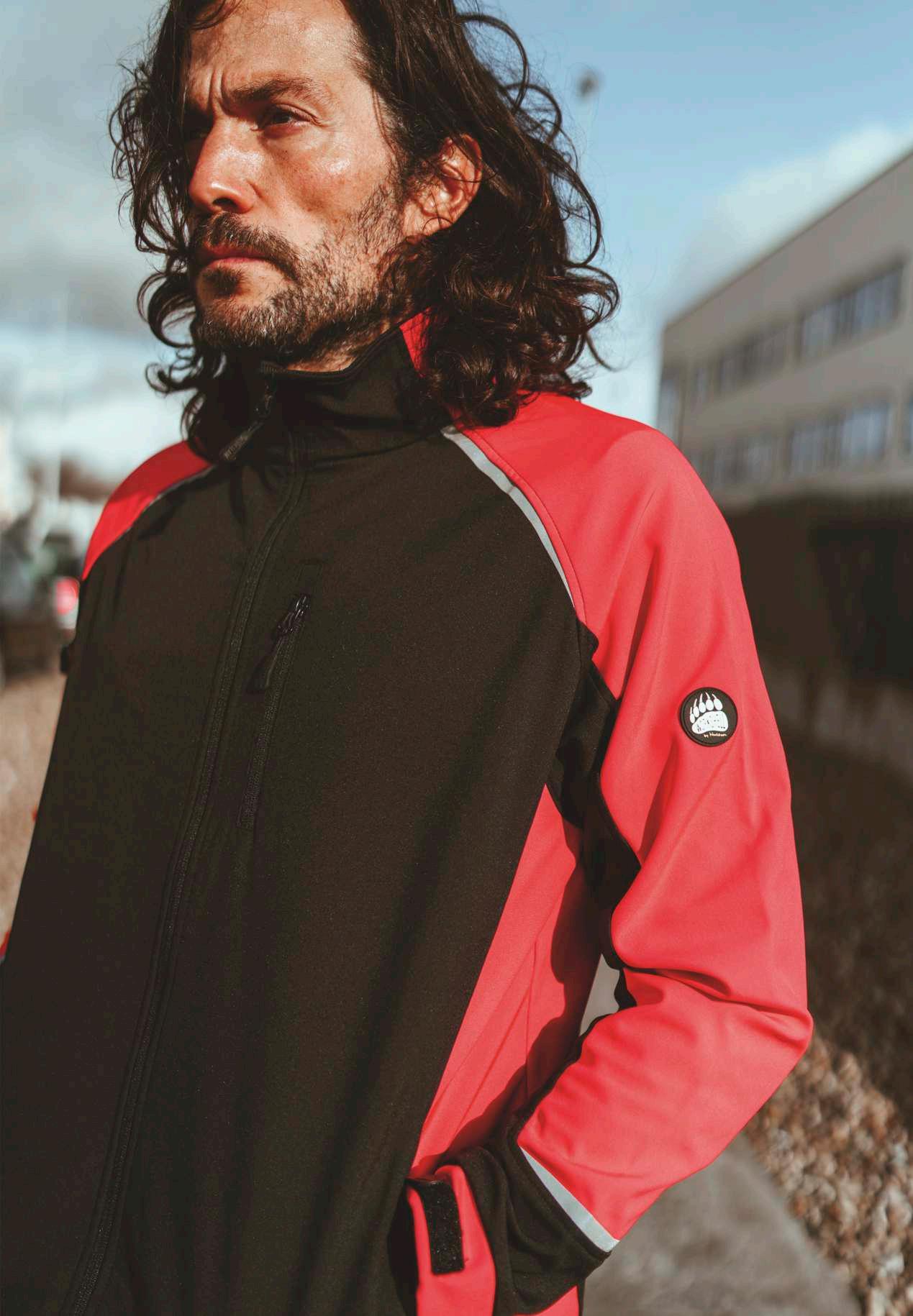 •ChaquetaWorkshelldeseñoracondetallesreflectantes.