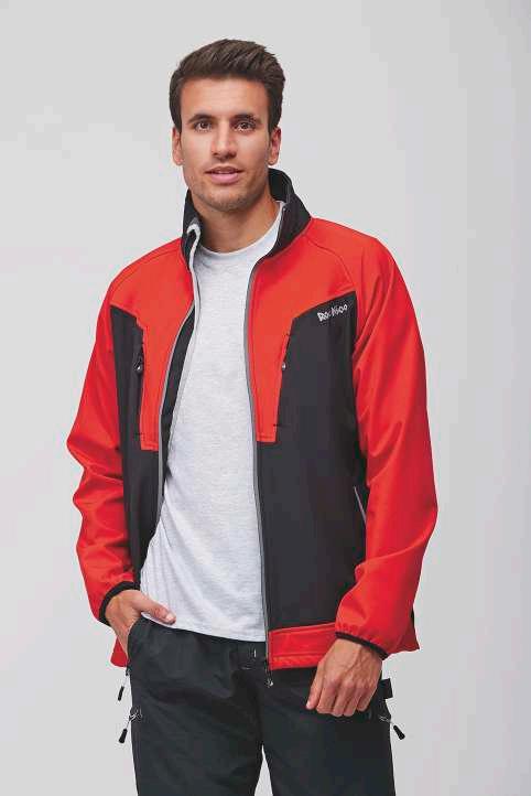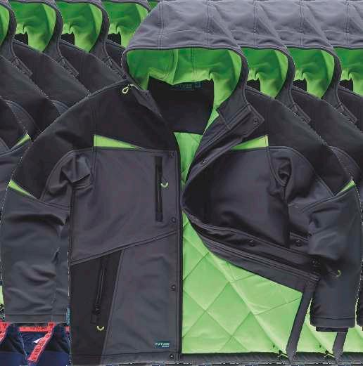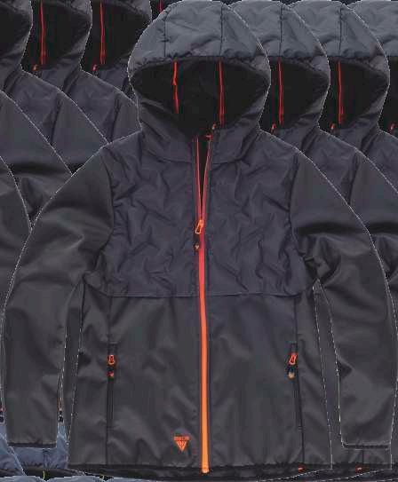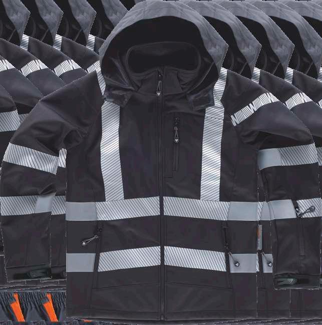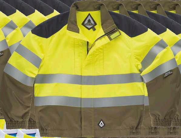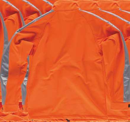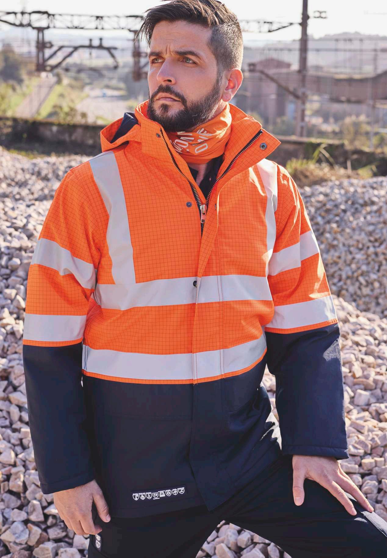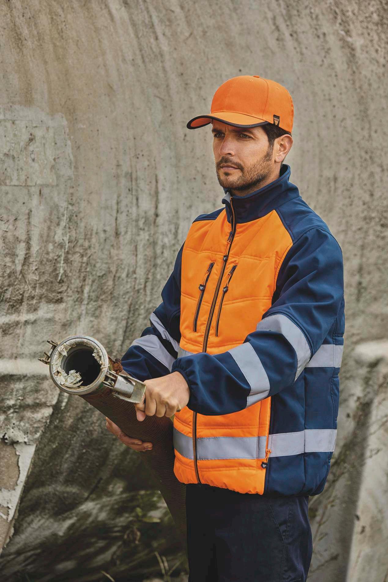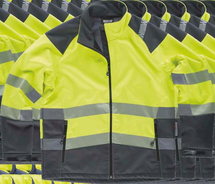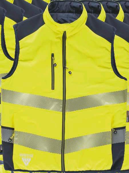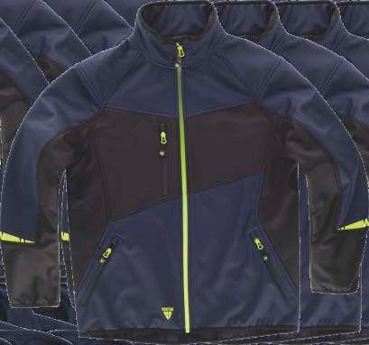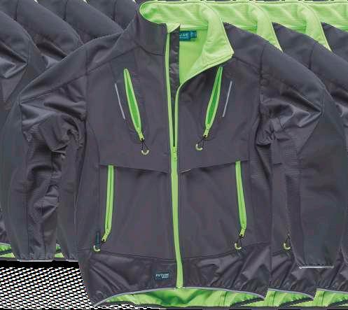 •GiaccaWorkshellleggeraconinternotecnico,abbinataad altavisibilitàconbanderifrangenti.
