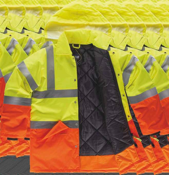 •ParkaimbottitoimpermeabileintessutoOxford,altavisibilità conbanderiflettenti.