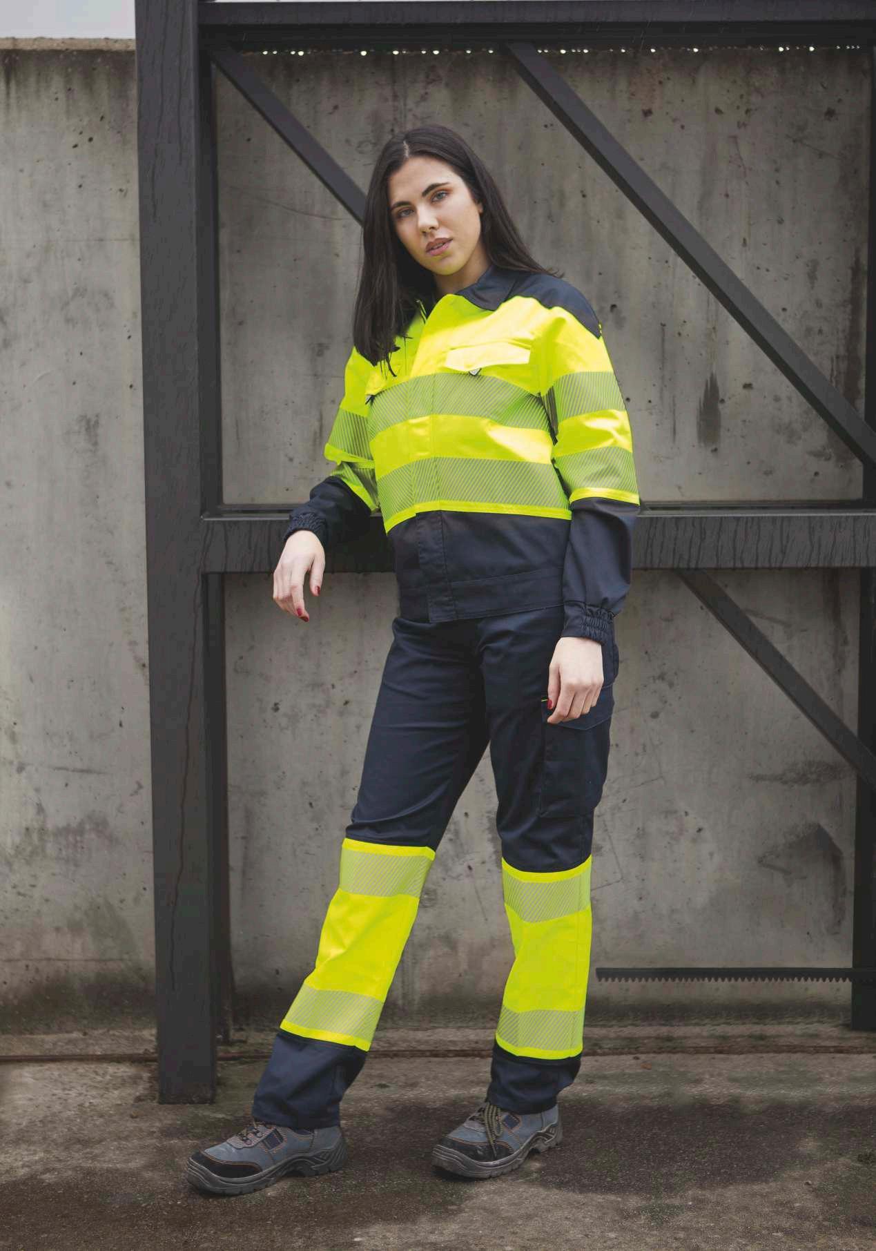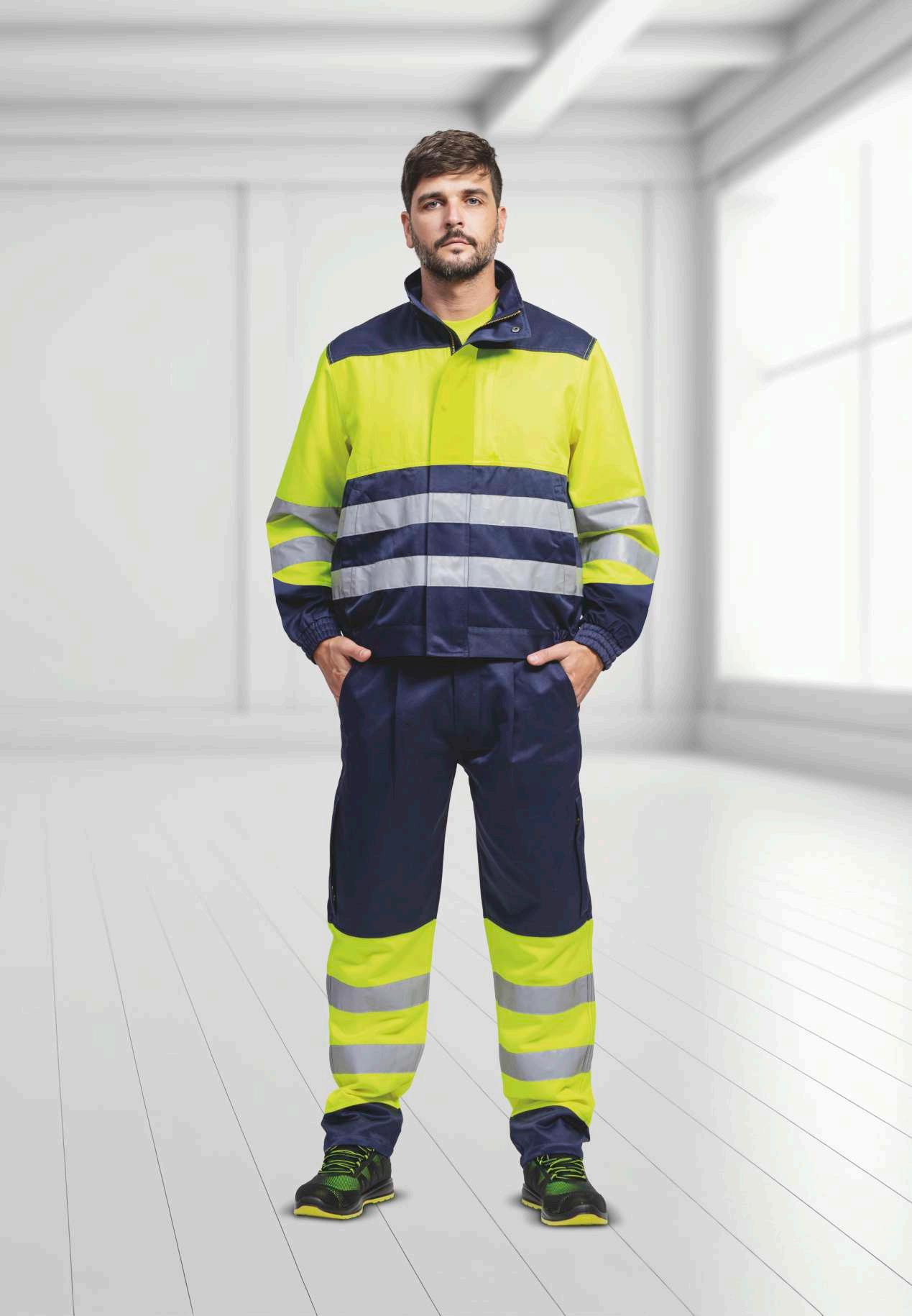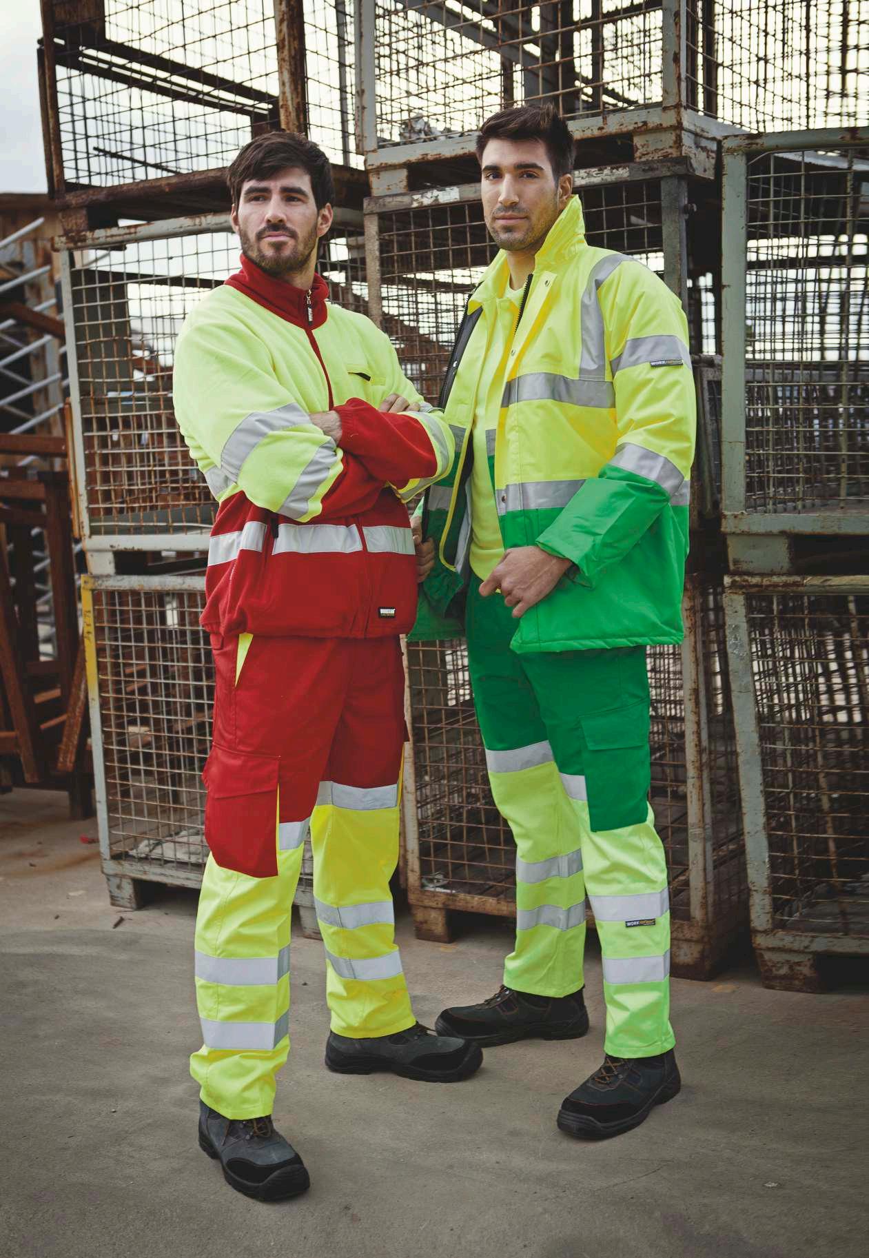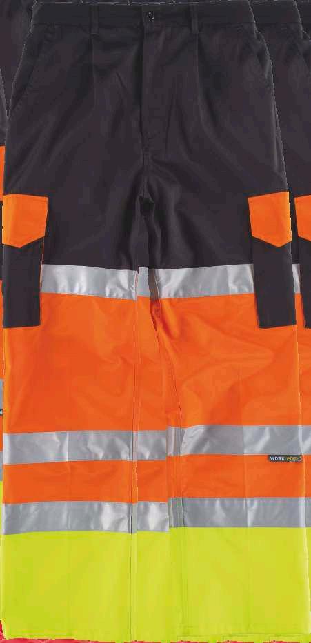 •Pantaloneelasticotricolore,combinatodialtavisibilitàcon banderiflettentesegmentate.