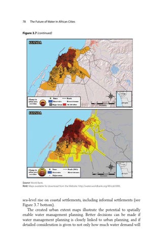 sea-level rise on coastal settlements, including informal settlements (see Figure 3.7 bottom). The created urban extent maps illustrate the potential to spatially enable water management planning. Better decisions can be made if water management planning is closely linked to urban planning, and if detailed consideration is given to not only how much water demand will