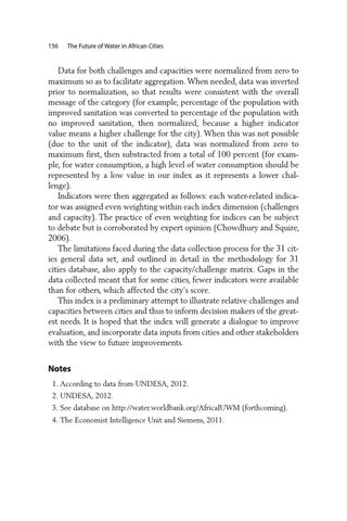 Notes 1. According to data from UNDESA, 2012. 2. UNDESA, 2012. 3. See database on http://water.worldbank.org/AfricaIUWM (forthcoming). 4. The Economist Intelligence Unit and Siemens, 2011.