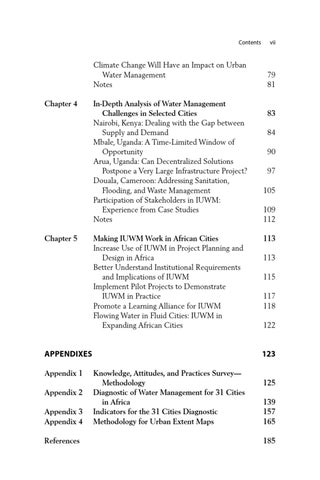 Appendixes Appendix 1 Knowledge, Attitudes, and Practices Survey— Methodology Appendix 2 Diagnostic of Water Management for 31 Cities in Africa Appendix 3 Indicators for the 31 Cities Diagnostic Appendix 4 Methodology for Urban Extent Maps References