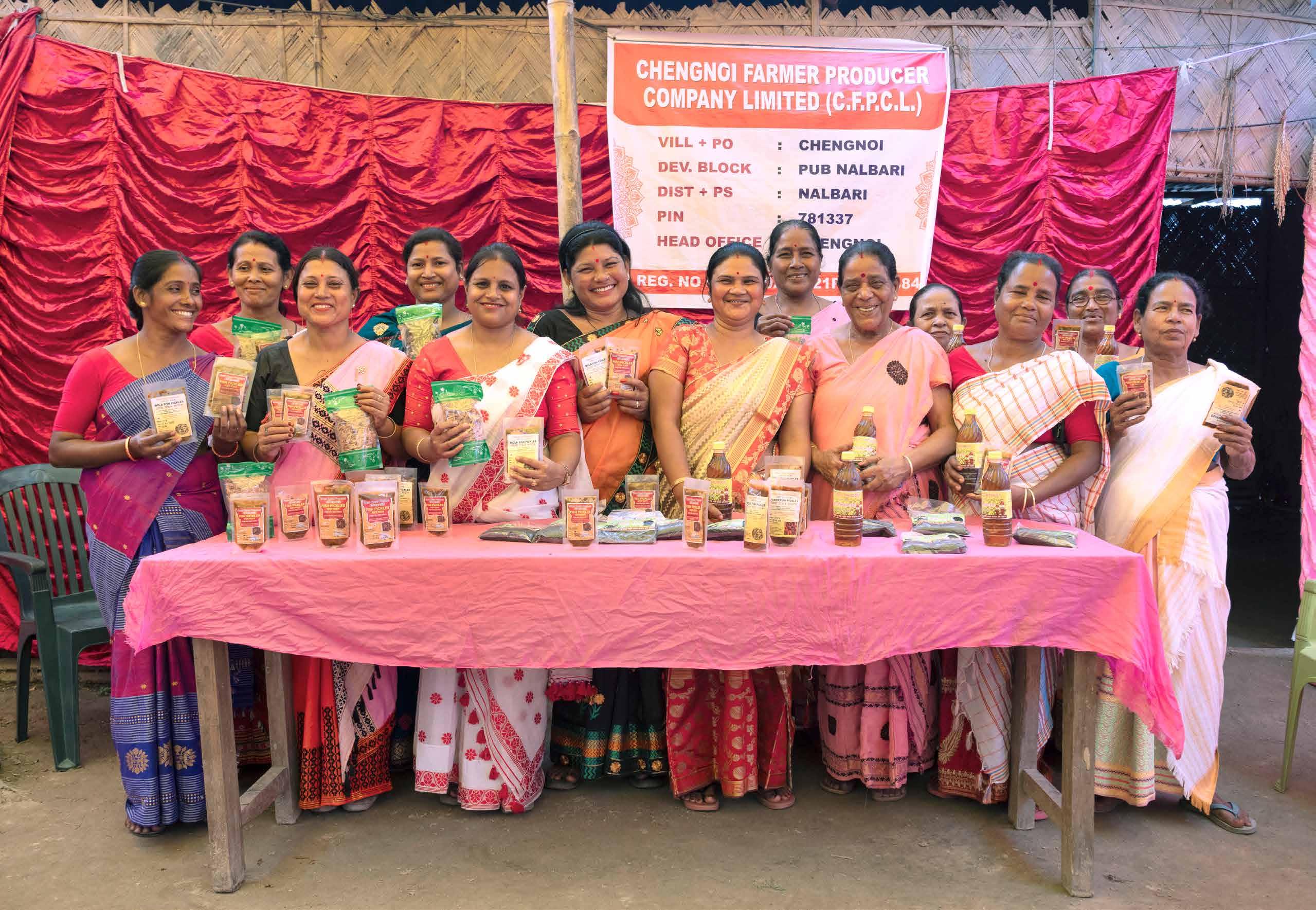 These women farmers are members of the Joyomoti Farmer Producer Company Limited, an all-women shareholder company, of 435 members from 25 villages in the Sonitpur district of Tezpur, Assam. They largely engage in cultivation, growing paddy, pumpkin, mustard, and other vegetables throughout the year.