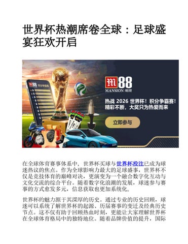 世界杯买球 - 世界杯作为全球最具影响力的体育赛事之一,不仅汇聚了世界顶级足球力量,也承载着深厚的文化、历史与情感价值。随着数字化和网络传播的发展,球迷获取世界杯信息的方式变得更加多元和便捷,从赛制变动、历史回顾到未来赛事规划,相关内容不断丰富和更新。世界杯逐渐发展为一个融合竞技、交流与互动讨论的综合平台,使全球不同地区和文化背景的球迷都能深度参与。随着2026年世界杯临近,赛事关注度与讨论热度不断升温,全球球迷的互动与参与将达到新的高峰,同时赛事背后的文化与社交影响力也将持续扩展,彰显世界杯在体育和社会领域的独特地位。