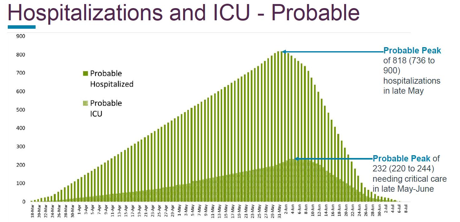 Master Projection Model ▪ Scenario Inputs: – Infection rate (Mild, Medium, Extreme) – Hospitalization Rate – ICU Admissions – Ventilator Utilization ▪ Utilization based on number of PPE changes/day for different areas – ICU, Acute Care, EMS, ER, Homecare, LTC, Community Physicians, Other non -healthcare areas ▪ Output – utilization profile over a 16 week timeline adjusted for length of stay of 10 days to factor in residual carryover ▪ Ability to escalate utilization or decrease ▪ Model drawback – assumption of normal distribution with peak occurring between weeks 7 to 9 – had to account for a left or right shift in timeline planning (previous slide) 19