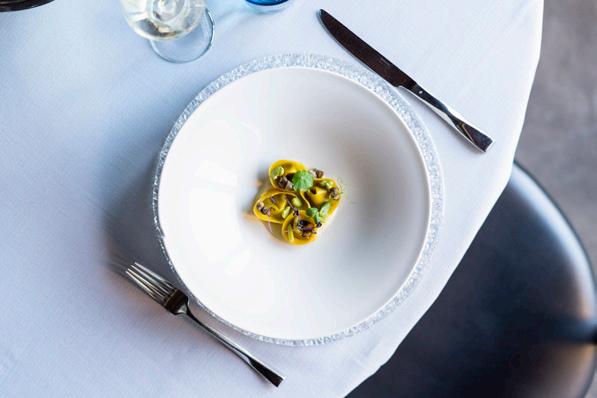 Dedicated to the delicate art of seafood preparation, the entire experience is grounded by an energetic open kitchen. Each dish incorporates an element of smoke, char, or fire – some subtle, others more overt.