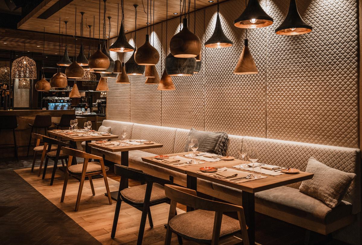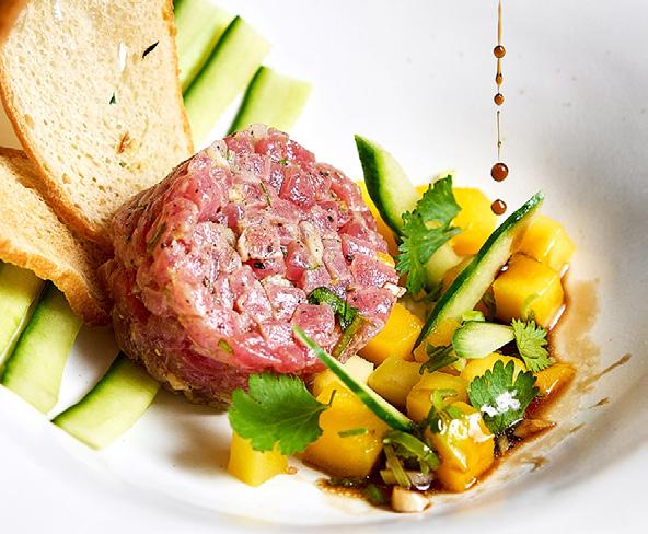 The drinks menu is equally impressive, offering an array of refreshing juices and mocktails with fascinating combina-tions of fresh fruits and herbs, perfect for quenching your thirst during the day, or a variety of wines, beers, and cock-tails as the sun sets.