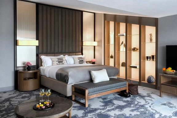 The hotel features spacious rooms and suites with floor-to-ceiling windows, luxurious amenities, and curated artworks. Culinary excellence is showcased across its distinctive dining venues, from modern Mediterranean to Asian-inspired rooftop experiences. Guests can unwind at the tranquil spa, enjoy personalized wellness treatments, or relax by the outdoor pool overlooking the city skyline.