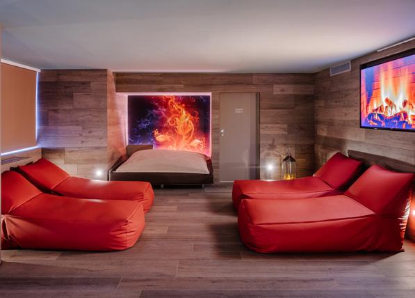 The comprehensive Erre Spa journey includes a sauna, Turkish bath, Mediterranean bath, covered pool, hydromassage areas, water jets and waterfalls, emotional showers, ice waterfall and various themed relaxation areas. In the multi-sensory areas, you can alternate between different experiences. The Erre SPA is accessible not only to hotel guests but also to anyone who simply wants to enjoy a day of wellness, both in the pool and wellness area.