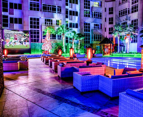 Watch LIVE football matches every day at the Outdoor Poolside Seating or enjoy a more cozy ambience in their Indoor Lounge!