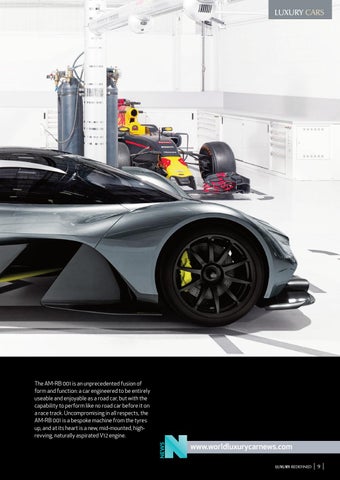 The AM-RB 001 is an unprecedented fusion of form and function: a car engineered to be entirely useable and enjoyable as a road car, but with the capability to perform like no road car before it on a race track. Uncompromising in all respects, the AM-RB 001 is a bespoke machine from the tyres up, and at its heart is a new, mid-mounted, highrevving, naturally aspirated V12 engine.