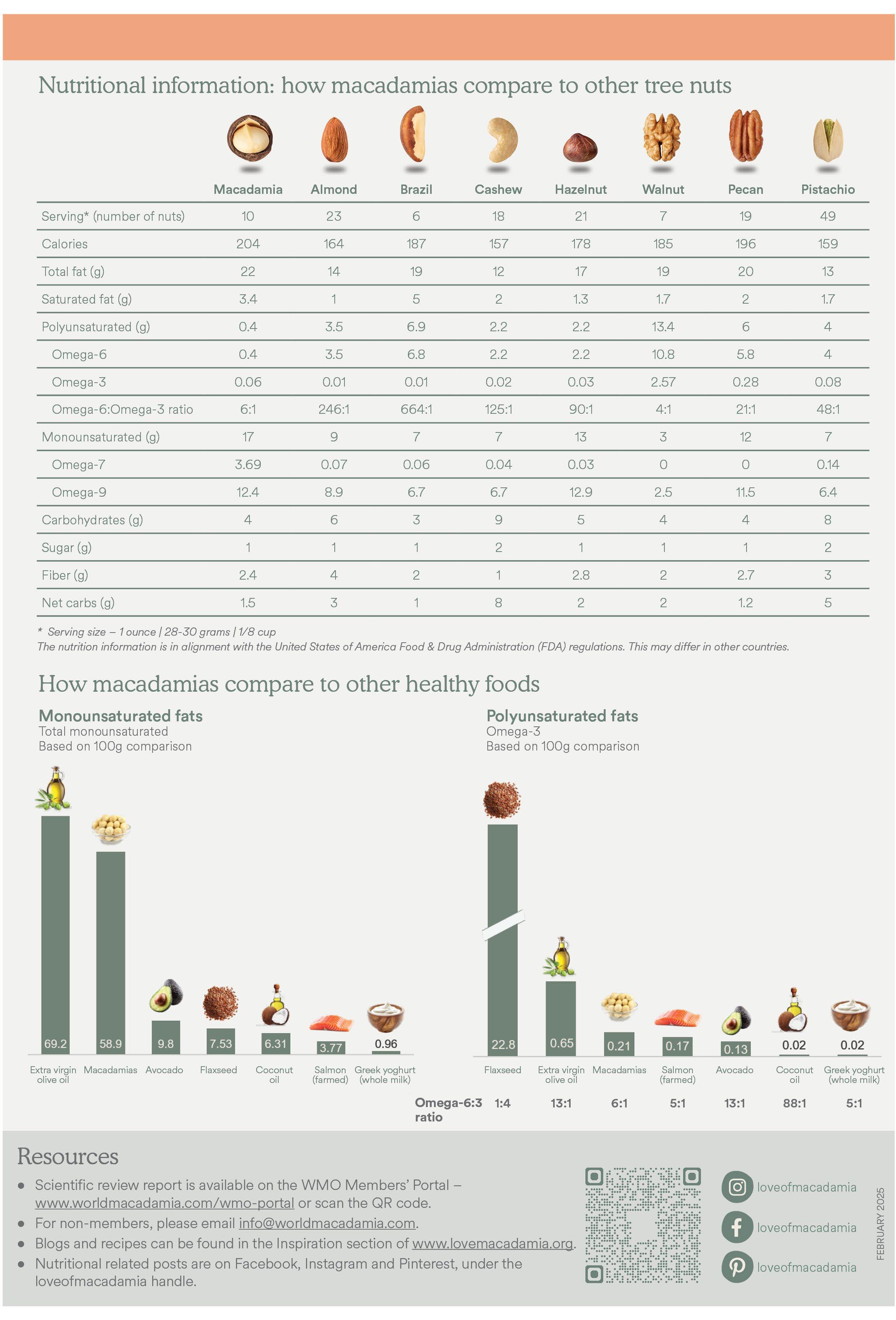 World Macadamia Organisation (WMO) periodically commissions a review of key scientific research, United States (U S ) regulations, and nutritional analysis to support the creation and evolution of a nutritional and health narrative on the benefits of macadamias. This narrative aims to deliver a science-based, compelling, and ownable message on macadamia nutrition and health benefits. The scope includes creating consumer-friendly messaging that is easy to understand, based on sound science, and meets U S regulations Processors and handlers, brand owners, influencers, nutritionists, and the wider macadamia industry are encouraged to use these resources.