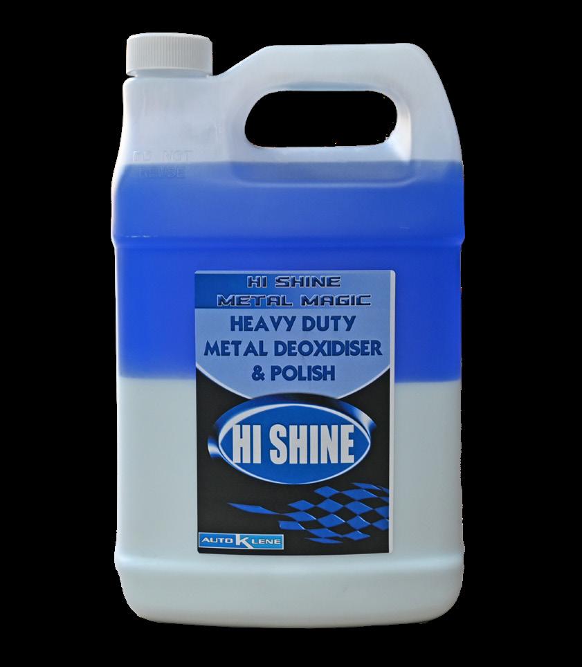 Hi Shine Metal Magic is the latest technology for fine polishing & removing oxidation from metal surfaces. Hi Shine Metal Magic contains high quality abrasives for simple scratch removal and cleaners that produce and impeccable shine. Quality sealers provide on-going and long lasting protection against further oxidation. Hi Shine Metal Magic is ideal for aluminium, brass, copper, stainless steel and chrome and does not contain harsh chemicals and ammonia.
