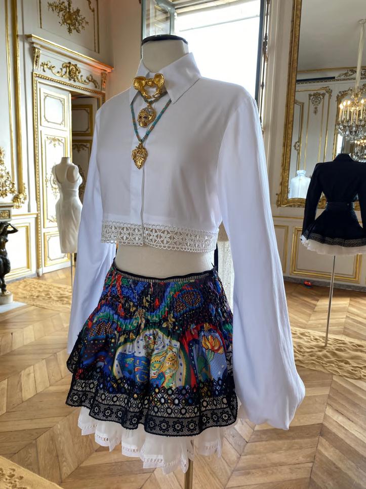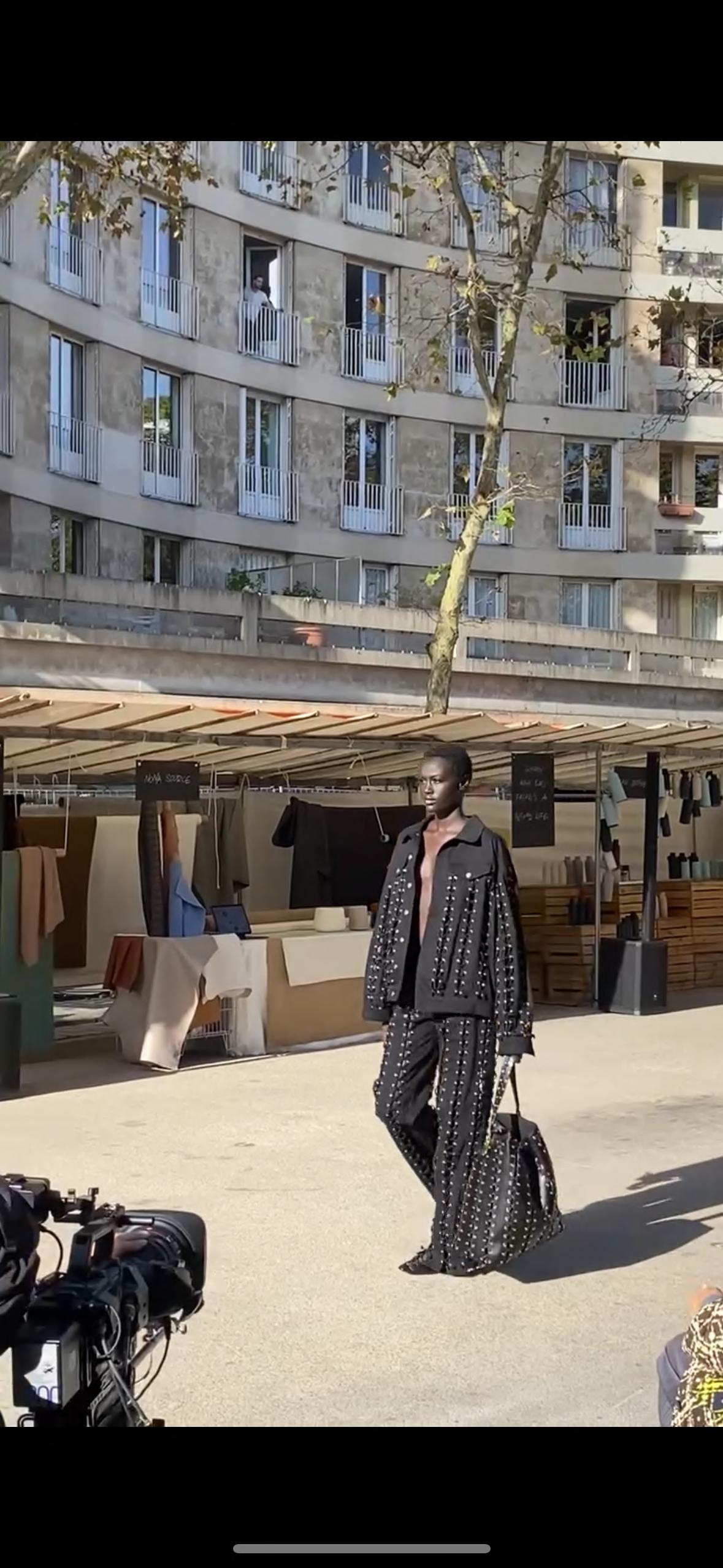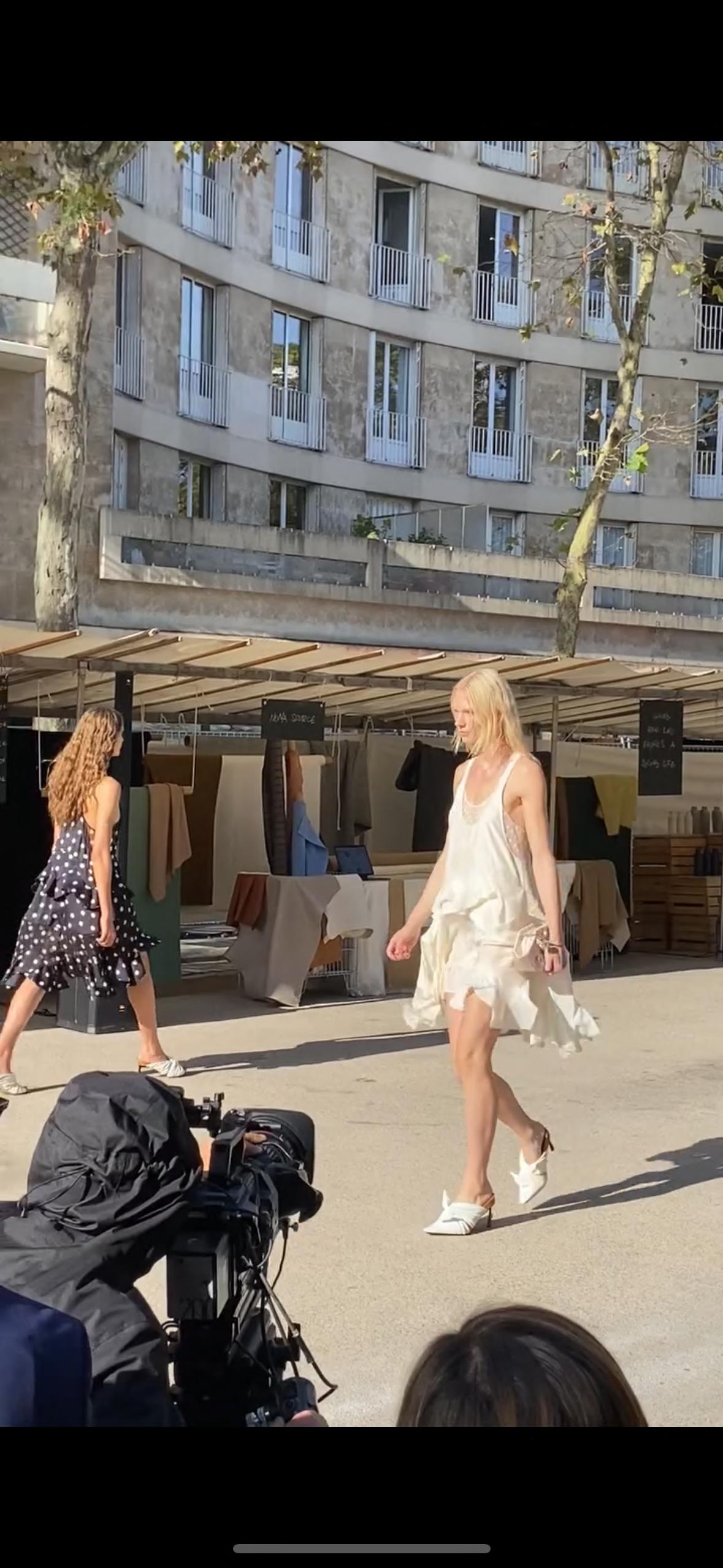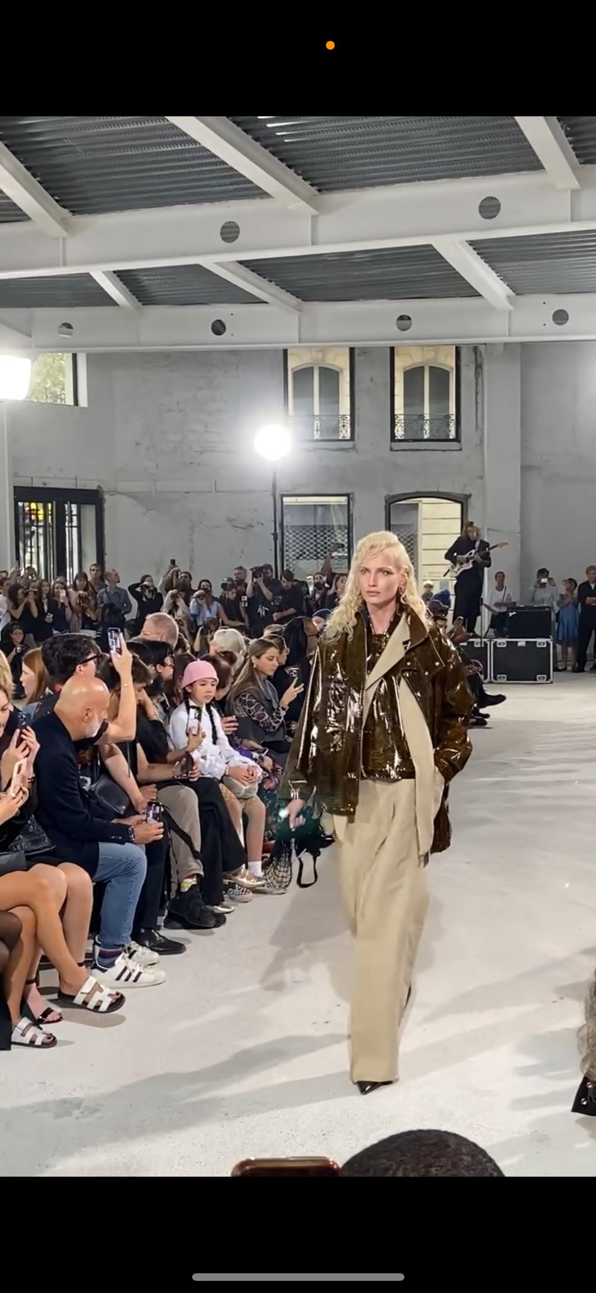 With the Eiffel Tower and a brilliant blue sky as her backdrop, Stella McCartney electrified Paris with a groundbreaking S/S 2024 show that captured the soul of her brand while signaling a new era in fashion. Titled “Stella’s Sustainable Market,” the collection merged a timeless aesthetic with innovative production methods, emphasizing sustainability throughout. Eclectic, familiar, and a little bit quirky, the looks were largely inspired by vintage clothing: more specifically, the clothing that Stella used to borrow from her parents and that her daughters now borrow from her They felt as relatable as an old friend, with the Stella archives being consistently referenced and polka dots, ruffles, and embroidery adding some playful flare “When I think about it, my parents were making and designing clothes too; I used to wear them and now my daughter steals them from me And I’ve been collecting vintage clothes since I was like twelve It’s a whole generational thing. I’m definitely exploring the Stella wardrobe over the years,” Stella told me after the show. Yet the collection also showcased avantgarde sustainable technology. “Selling sustainability needed to be the title of the show,” she continued. “We need to show people that this is the future, that this has legs, and that this is going to swap out bad for good.”