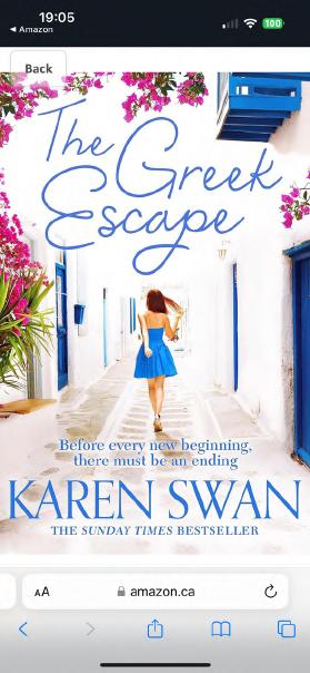 The Greek Escape, Karen Swan: Chloe Marston, London socialite and luxury concierge, moves to New York to escape heartbreak (which just happens to be over her mercurial newly-engaged current boss). She’s used to organizing the lives of the world’s most powerful and demanding individuals, yet nothing prepares her for mysterious new client Joe Lincoln, who takes her to a food truck for their first meeting then flies her private across the Atlantic to help him purchase a property in Greece on their second As Chloe navigates her feelings for Joe and the pressure of finding him a secluded villa in mere days, an ominous accident unfolds in New York and an unnamed woman seeks an escape from her abusive husband in Cannes Spoiler alert: they all live happily after, but not until a couple of final twists that surprise and delight A fast-paced page turner, full of romantic descriptions of the Aegean and written by an author who seems to genuinely understand the milieu of her characters, it will have you dreaming of summer vacation and new romance from the first few pages. Karen Swan, who started her career in fashion journalism, has many books with similar plots This is her best .
