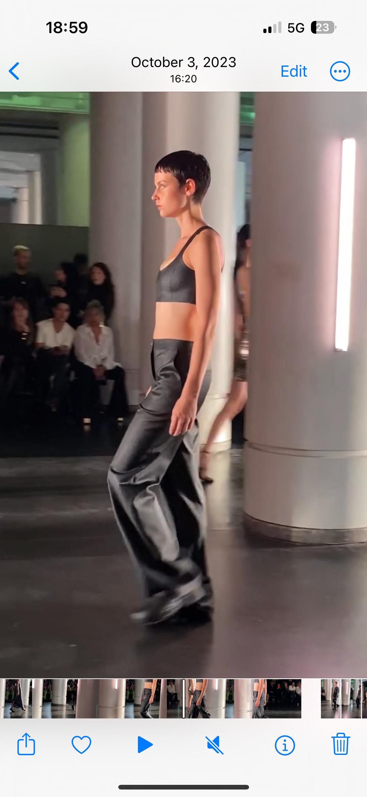 Vegan leather also starred; a series of Frayme bags was crafted from grape byproduct from Veuve Clicquot’s harvests Stella told us that “in total, 95% of this season is sustainable - it’s the highest sustainability we’ve ever had ” Guests of the show got to peek behind the curtain at what this actually means 21 market stalls lined the runway, each staffed by smiling faces eager to explain how the materials showcased on the catwalk were made “We needed to have something that shows people the innovation, the creators, the technology,” Stella said. “For me we use it on the runway but it’s really hard to understand how a piece of seaweed can become knitwear or how the waste of wine, grapeksins, can become a bag. So I wanted everyone to meet the innovators and the true heroes behind the brand.”