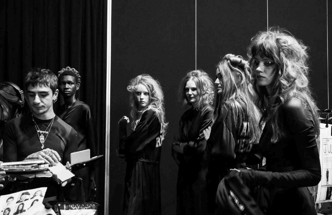 Photography director Leroy Velasquez leads us off by taking you all-access to Aniye Records, capturing chaos, adrenaline, and camaraderie backstage as stylists, models, and make-up artists alike prepared for one of the most iconic shows of the Fall/Winter 25/26 season. “There's something beautifully defiant about capturing rebellion in black and white,” Velasquez says. And the essence of that rebellion, as unapologetically Kate Moss-ian as smoking a cigarette on the runway, is eloquently portrayed through his exclusive photographs.